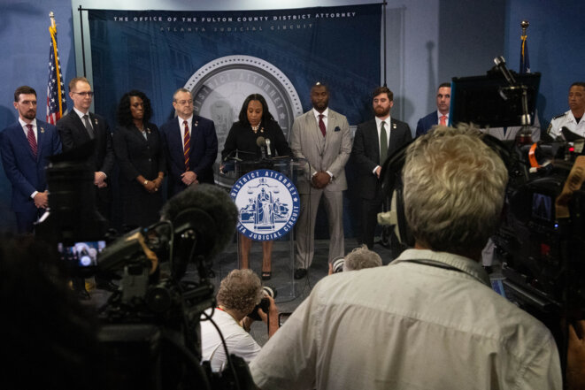 Alors qu’il s’est rendu à la justice de Géorgie, jeudi 24 août, pour être formellement arrêté pour la quatrième fois dans le cadre d’une affaire pénale, l’ancien président républicain joue avec le feu, et avec les institutions, pour sauver sa peau.