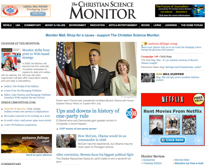 Pour la première fois, un quotidien américain d'envergure nationale cesse de paraître sur papier pour se consacrer quasi exclusivement à l'information sur Internet. Même si le cas du Monitor est atypique, il préfigure les changements en cours dans la presse.