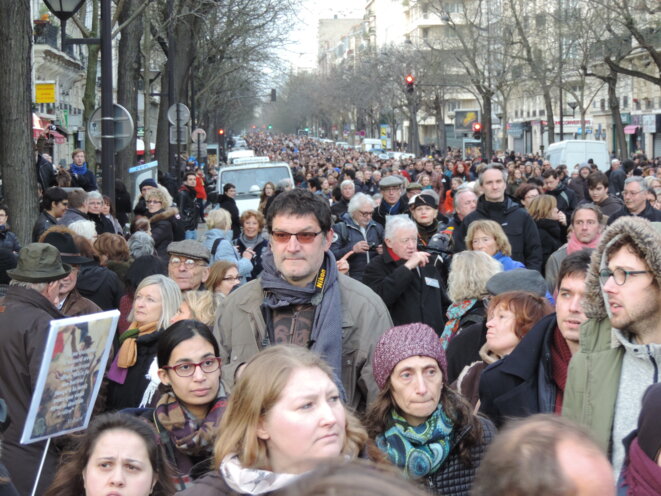 Four days after the massacre at Charlie Hebdo magazine, followed by the murders of two police officers and two bloody sieges which saw four people executed in a Jewish supermarket, the people of France have taken to the streets in record numbers - 3.7 million - in a day of solidarity with the 17 victims of the attacks. For the first time in a quarter of a century the French president marched with the people as François Hollande joined more than 40 world leaders on the streets of Paris which he said had become the “capital of the world” for the day. But the most moving part of the massive march between two major squares in Paris, the place de la République and the place de la Nation, part of the biggest public gatherings seen in France since the Liberation in 1944, was the volume of ordinary citizens who turned out to show support for the victims' families and their determination that people's freedoms should not be undermined by terrorists. Mediapart reports on the turnout in words and pictures (updated Monday).