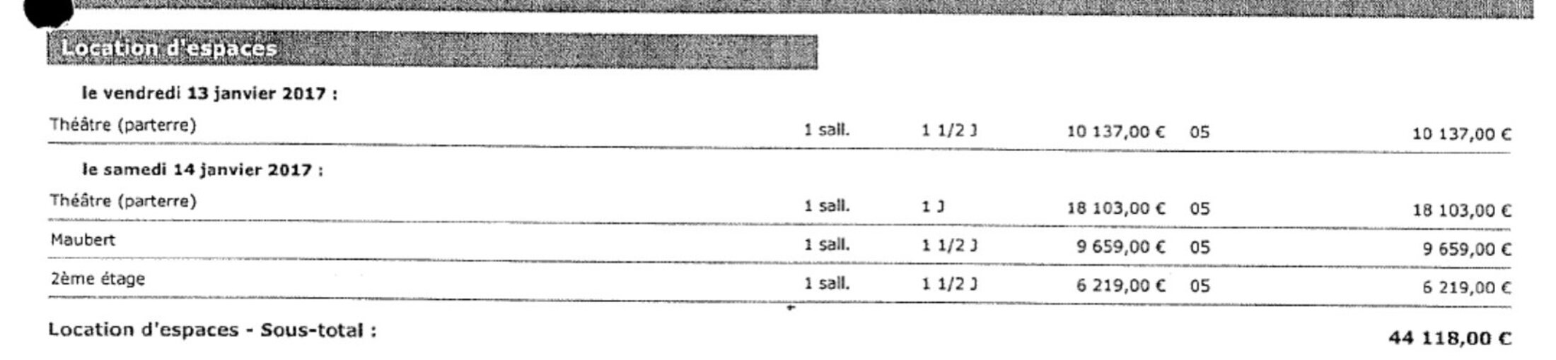 For the campaign event on January 29th, Hamon had hired several rooms on the third floor at the Mutualité for a total of 17,871 euros. Once again the socialist candidate got no rental discount. However, on this bill there was a “discount” column. Under the “services” section - the total of which came to 33,119.60 euros – Hamon did get a mini-reduction on the cost of the “wine service”. The amount: 32.40 euros or just 0.001% of the total sum.