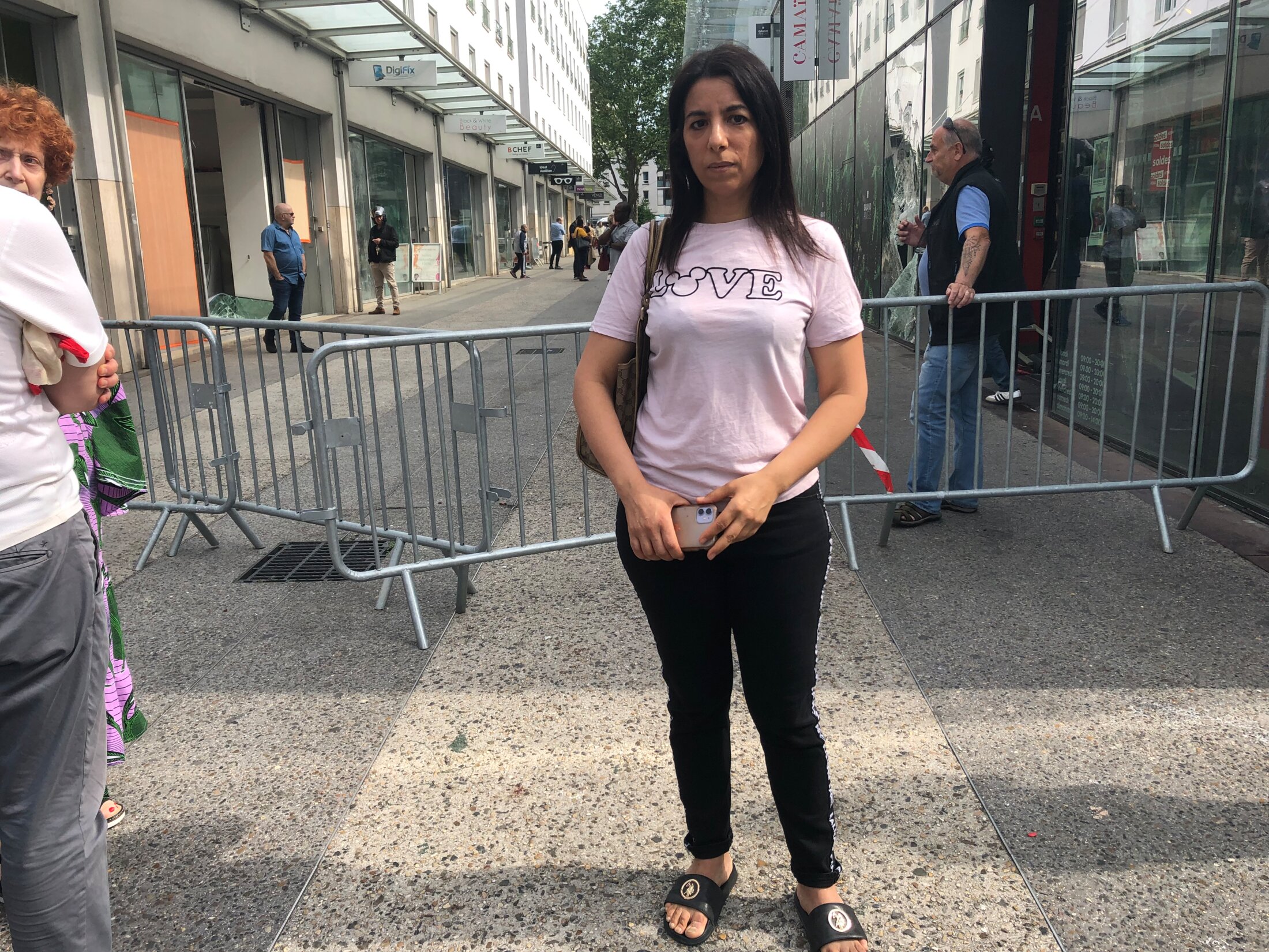 “What gets me is the curiosity. People come, they film, they take photos, like they were tourists,” says Didier, father-in-law of the owner of the Yves Rocher perfume store whose shopfront was badly damaged. His daughter-in-law, who has run it for six years, is in shock. A few minutes later she loses her temper with an official in a suit at the doorway who has been hastily dispatched by the owners of the shopping centre to check on the extent of the damage. Camille, one of the two sales staff at the perfume and cosmetics store, describes the day that lies ahead: clearing up and making an inventory of the creams, perfumes and soaps that have been stolen. “I understand the rebellion that's taken place since Nahel's death, but not the actions,” she says. “How are we supposed to work?”