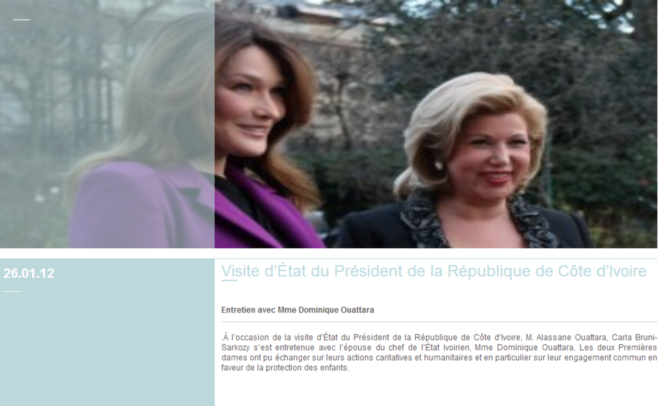 That statement implies that the 410,000 euros that were allocated to her site between January 2011 and May 2012 concerned only the pages concerning her activities as First Lady. A blogger who writes under the name of GeekMan subsequently went looking, via web.archive.org, for the pages no longer accessible and discovered that, over the year 2012, just seven articles existed referring to her activities as First Lady, along with several photos. According to Laurelli, these short texts appear above all as intended for posts on Twitter. According to the figures published by the Court of Accounts these cost the taxpayer 80,000 euros.