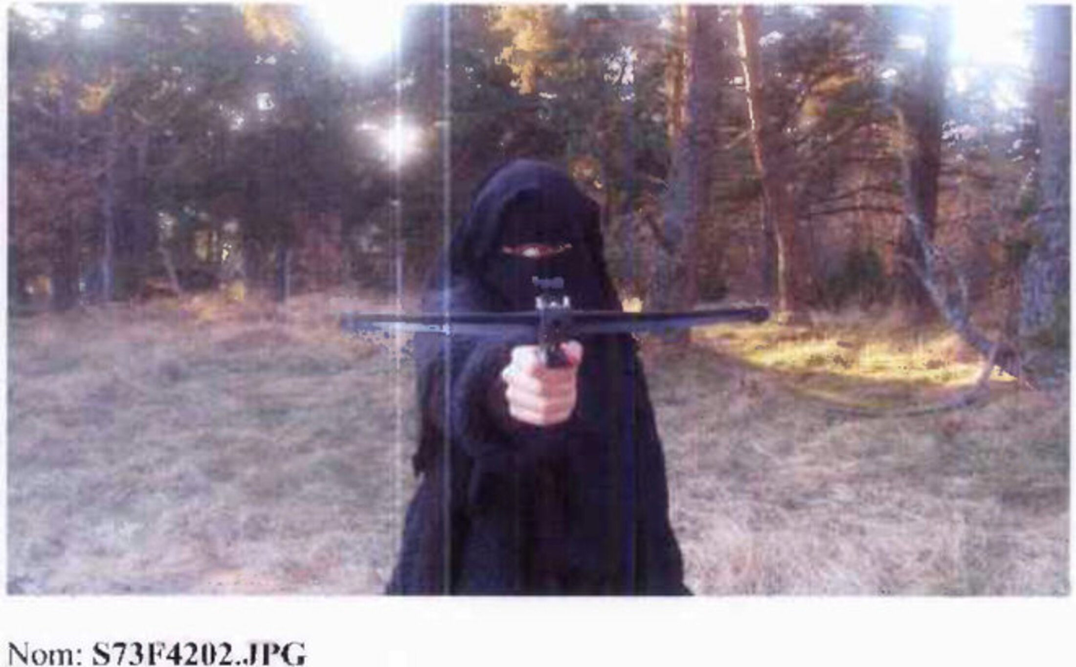 There is also mystery over Hayat Boumeddiene. There have been conflicting reports as to whether she is still alive, but if she is, her exact whereabouts are unknown. In the aftermath of the January 2015 attacks, she became in France a symbol of what until then was the little realised involvement of women in jihadism, notably when the media were issued with pictures of her, taken by Coulibaly in 2010, of her dressed in a niqab and wielding a crossbow in countryside in the Cantal region of central France. In one of the photos (see below), she points her weapon straight at the camera in a warrior-like pose.