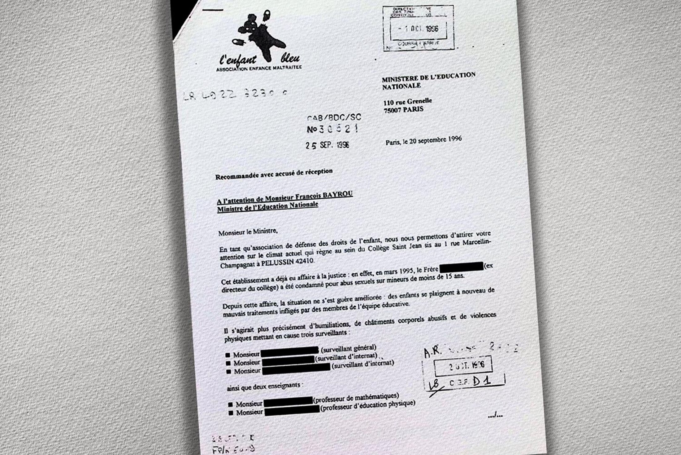 The anti-child abuse group L’Enfant bleu Enfance maltraitée had now become involved. It wrote to François Bayrou and received a reply from a senior official at the ministry (signed “on behalf of the minister”). Yet the whistleblowers who had stopped a paedophile still received no acknowledgement.