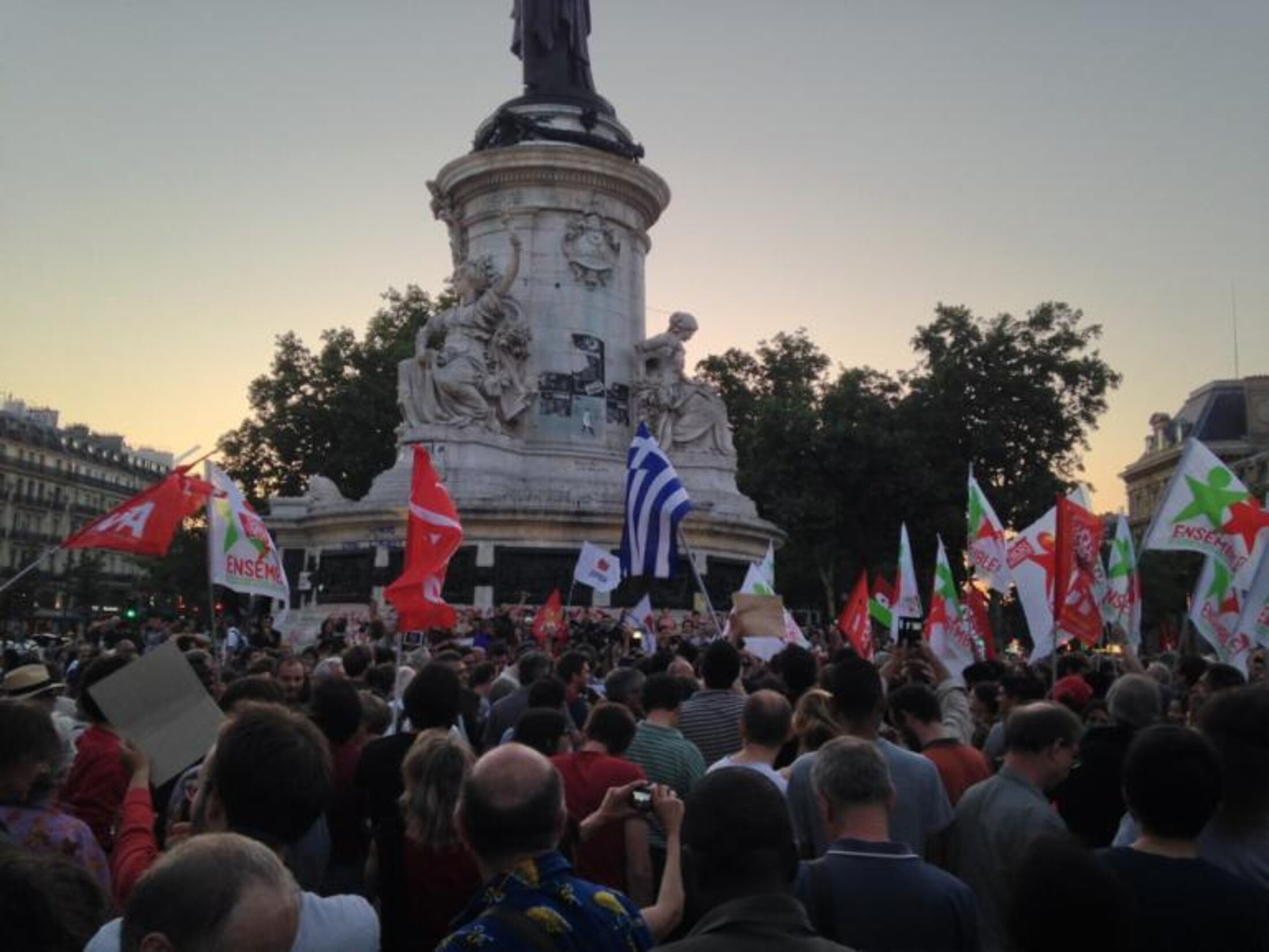 In Paris itself the radical left Parti de Gauche held an impromptu gathering of solidarity with the Greek people at the place de la République (see photo below), attended by around 2,000 people, including senior figure Jean-Luc Mélenchon.
