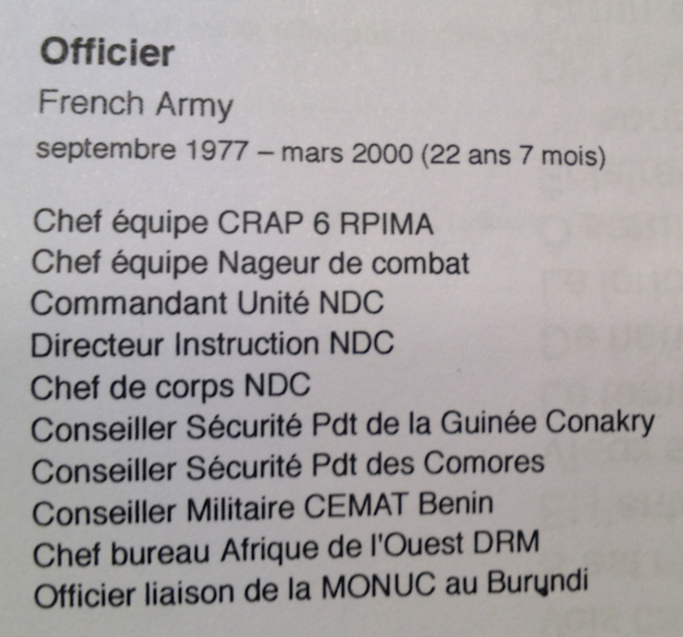 Replying to him that the choice not to identify them lay at the very heart of what I was saying – a plea on behalf of the participants who were condemned, an indictment against the presidential system that was spared – I told him that Jean-Luc Kister did not hide himself away, as shown by his profile on the professional social network Linkedin (see his profile here, which has since had some details removed, notably his past as a frogman, since the image shown above). That is how they got in touch and how, in turn, Colonel Kister called me on my mobile phone on Monday July 27th.