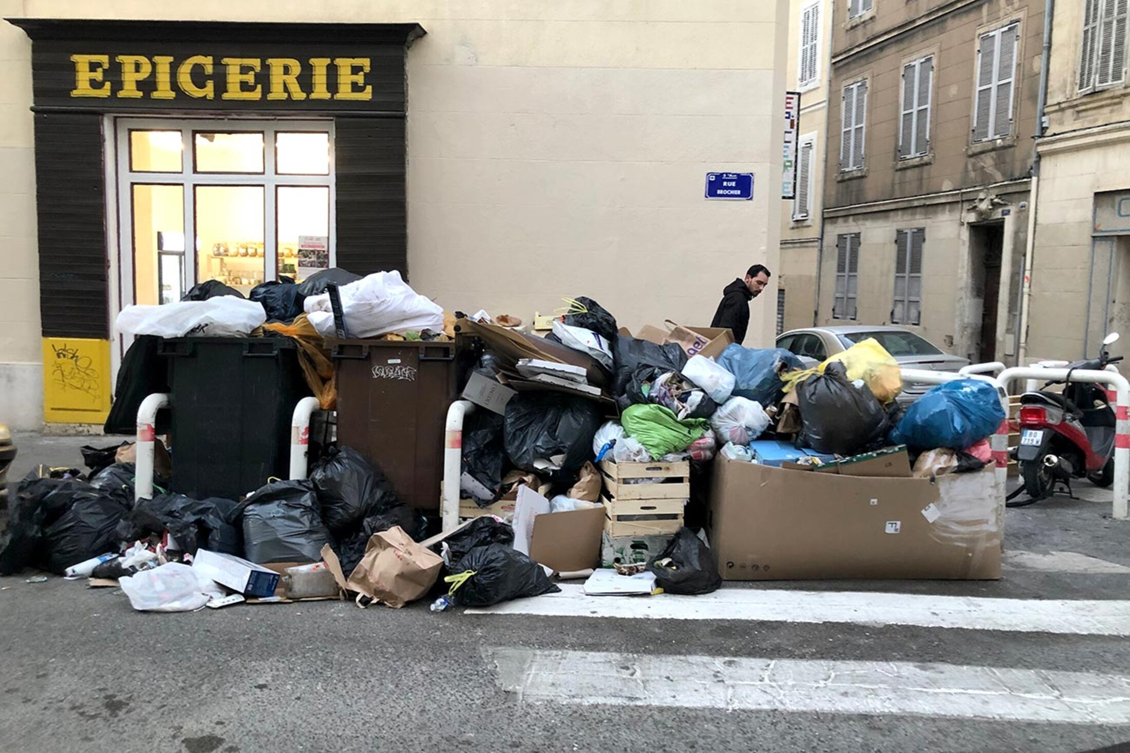 Then a new factor emerged in the middle of the dispute. The local cold, blustery wind known as the mistral sprang up violently and swept across Marseille, adding to the local anger. Under a clear blue sky the rubbish flew in all directions, covering the streets. The main shopping centre was more or less spared as its rubbish is collected by a private company. But the poorest streets were a mess of burst bin bags.