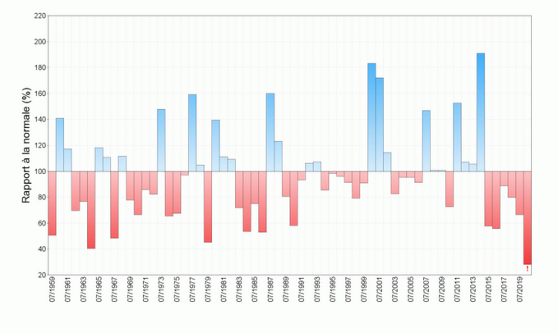In July, France experienced its lowest rainfall since the national meteorological office, Météo France, began recording it on a national scale in 1959, and the phenomena of summer droughts has been significant since 2011.