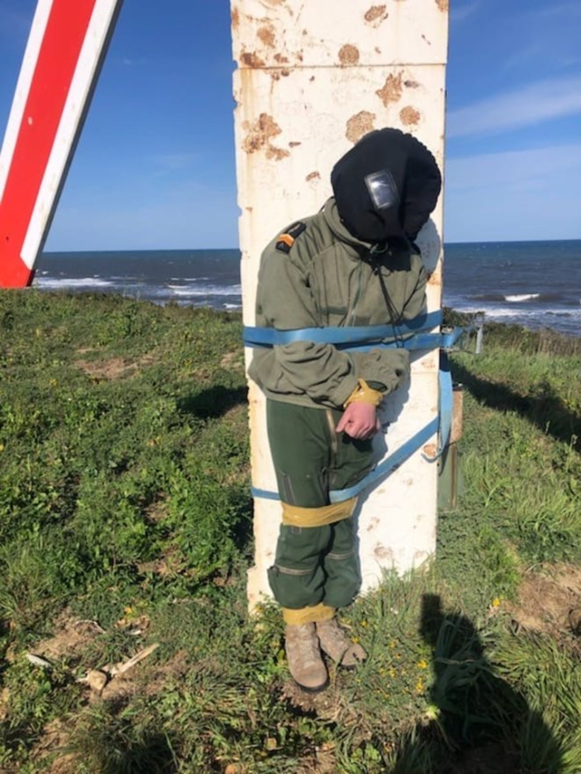 In the complaint filed by A.S., his lawyers described the events that followed: “A first plane is heard by the victim passing in front of him, from the left to the right and carrying out a pass of live [ammunition] firing. The victim then hears the noises of bombs that crash to his right, causing an impressive and frightening sound […] The planes incessantly circled to his right to reposition themselves and to engage sometimes in firing live ammunition to the right of the victim, sometimes in simulated firing in his direction, and all of this during about ten minutes.” The hood was taken off pilot A.C.’s head when, still strapped to the pole, he could then see the jets circling. In his complaint, he estimates that the live ammunition was being fired about 500 metres away from his position, and that the ordeal lasted for around 20 minutes.