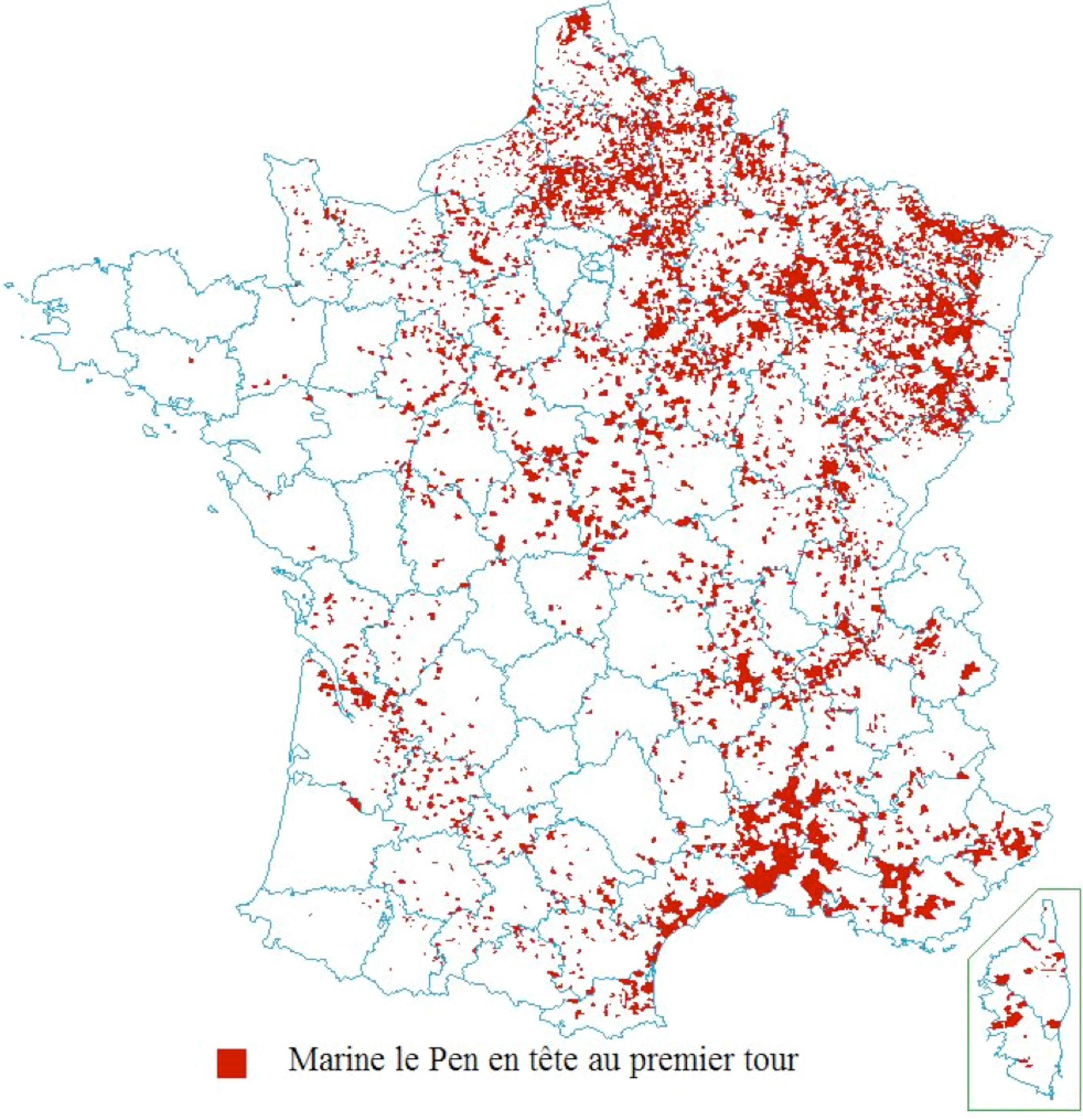 In the first-round vote, Marine Le Pen arrived in first place in 5,855 municipalities, an administrative term can apply equally to villages and towns. In all, this group is made up of quite different populations and geographical locations, ranging from Mazouau, in the Vosges region of eastern France, with a population of just 15, to Martigues, in the southern Mediterranean region of Provence, home to 46,000 people.