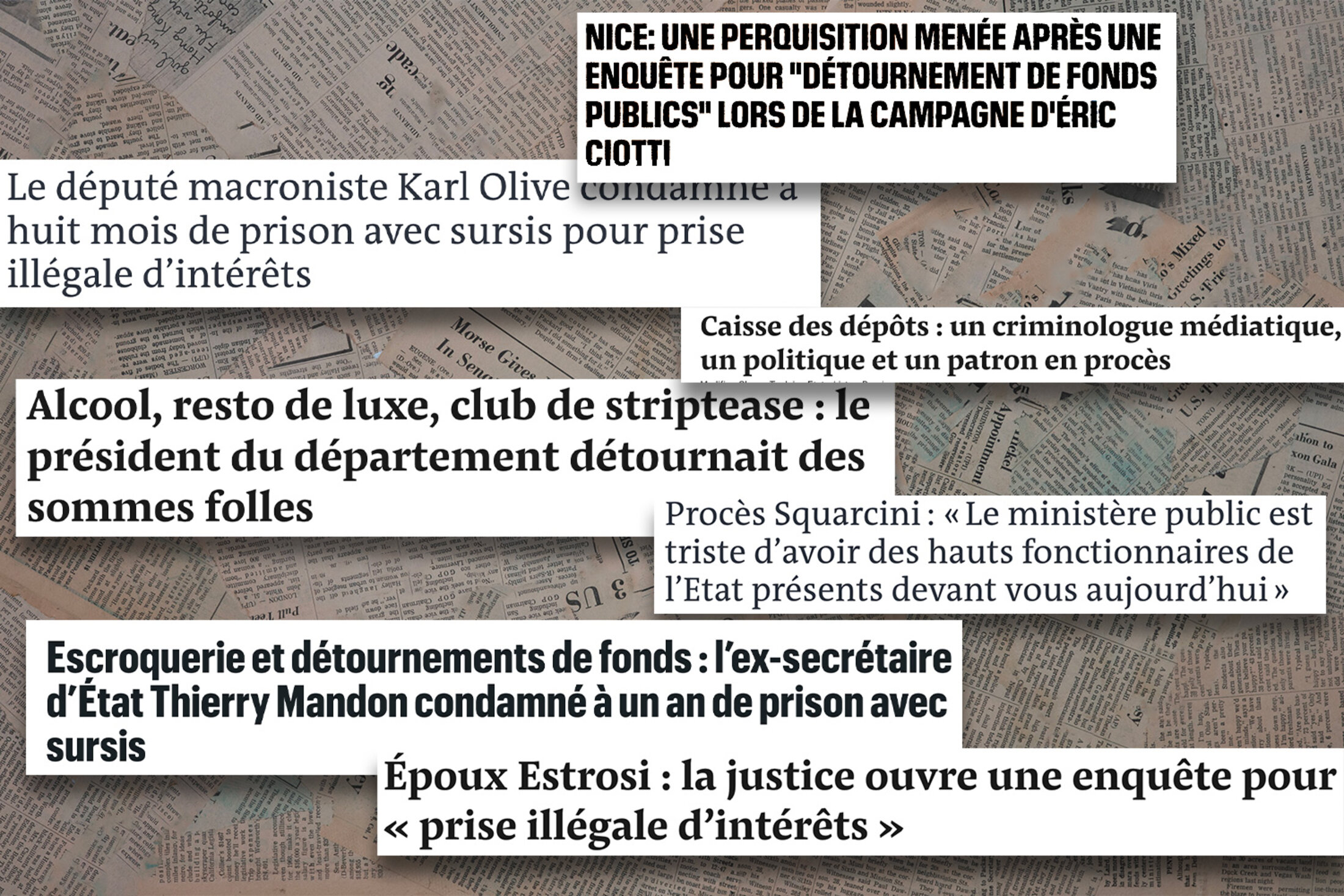 But corruption itself? It disappeared from the radar. Yet it is everywhere, right before our eyes. Indeed, to see this you only need to list the cases that have dominated the news over the past three weeks, which is precisely what Mediapart has done in the list below.