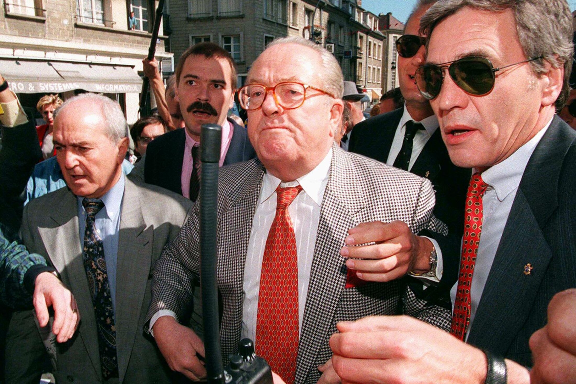 In 1985, around 100,000 people gave him a triumphant reception as he took to the stage at a Front National rally in the Paris suburb of Le Bourget. It was an opportunity for Le Pen to attack four prominent Jewish journalists. “I especially dedicate your reception to Jean-François Kahn, to Jean Daniel, to Ivan Levaï, to [Jean-Pierre] Elkabbach,” he said, to ever louder jeers from the crowd as he pronounced each of their names. For that he was convicted of anti-Semitism and was barred from taking part in the programmes of radio station Europe 1, which employed the targeted journalists.