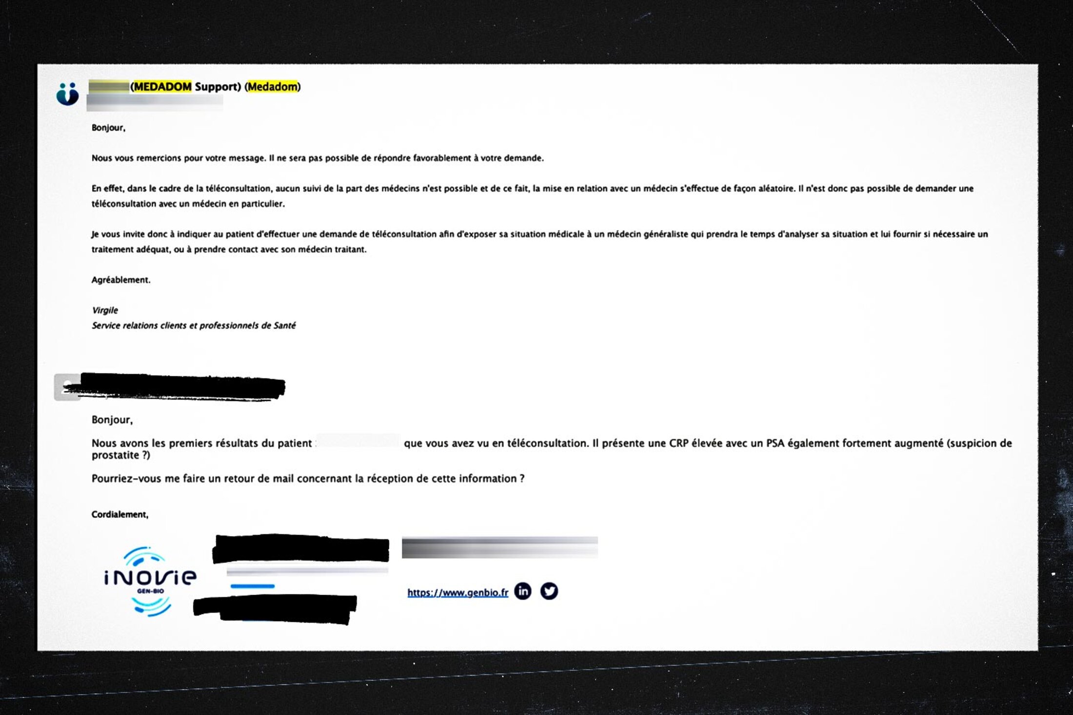 In an email exchange that Mediapart has seen, the service provider in question - Medadom, one of the three leaders in the French market - confirmed that “with teleconsultation, no follow-up with doctors is possible, hence patients are connected to a doctor randomly”.