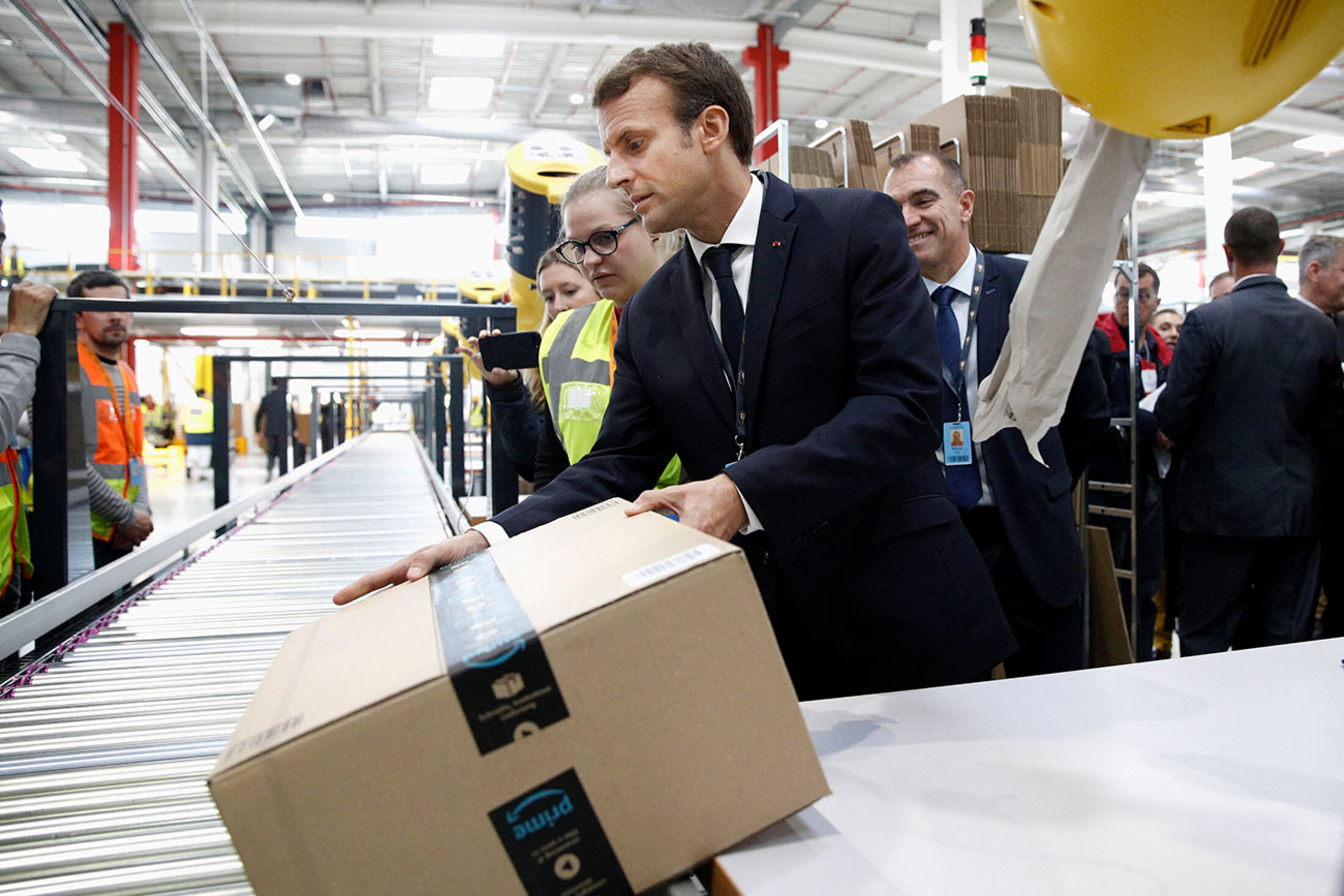 Given that involvement in the election, it is unsurprising to see evidence of a deep closeness between the parties once Emmanuel Macron had taken office. “I'm happy to be seeing you again tomorrow,” Amazon's head of public affairs Jean Gonié said in an email to Fabrice Aubert in September 2017. Their meeting was arranged to prepare for the inauguration on October 3rd 2017 of the group's logistical centre at Boves, not far from Amiens in northern France, in the presence of Emmanuel Macron and several senior figures at Amazon. The different parties taking part in the event all shared a common narrative. The number of jobs created by the new centre - “500 permanent posts” - was highlighted by everyone, from the press dossier to the president's remarks, including the little note that the president put in the centre's first parcel, which he himself sent.