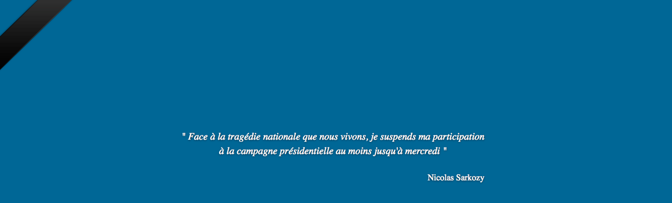 The candidate for the right-wing UMP may have suspended his electoral campaign after the shootings but that did not mean he disappeared from public view. Re-assuming his role as President of the Republic rather than presidential candidate, Sarkozy called for a minute's silence in all of France's schools on Monday at 11am. He also visited the Nazareth synagogue in Paris. On Monday he formally announced that his official campaign would be suspended until at least Wednesday – the day of the three soldiers' funerals in Montauban which he attended in his capacity as president. Official campaign visits were stopped, as were scheduled media appearances. Sarkozy's campaign website lafranceforte.fr had a black band added and announced the suspension of the campaign (see below).