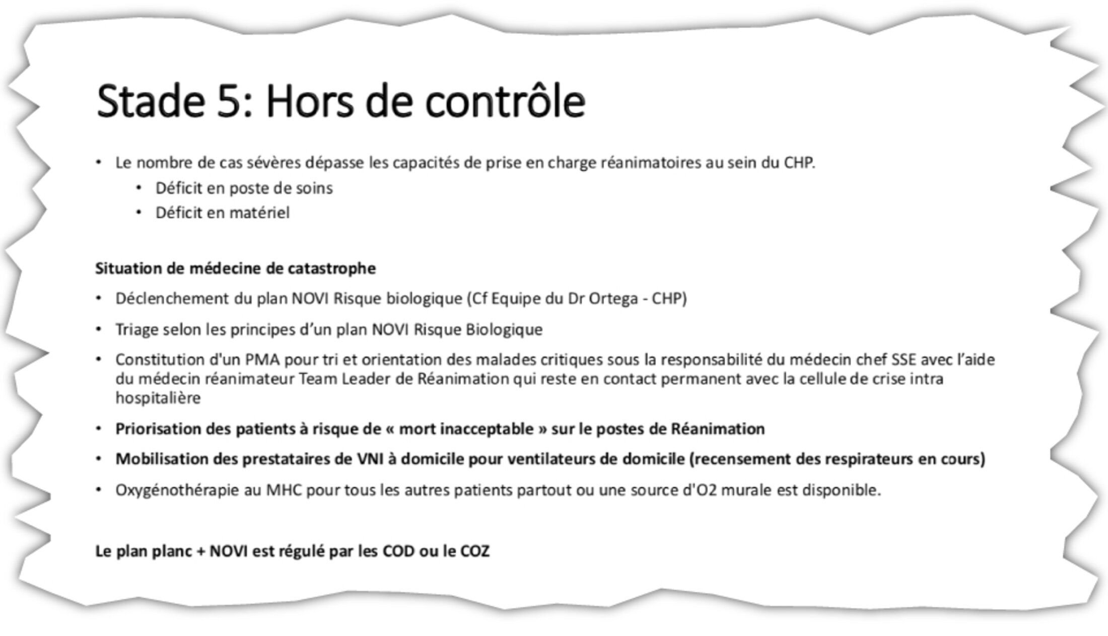 The document (see below) warns “four categories of patients will die”, detailing these as: “Inevitable deaths: a patient beyond all therapeutic resources owing to the severity of the illness or terrain (including age). Avoidable deaths: could have been avoided in the case of care of a better quality or better organisation. ‘Acceptable’ deaths: very elderly or polypathological patients. ‘Unacceptable’ deaths: young patients without major comorbidities whose death was avoidable.”