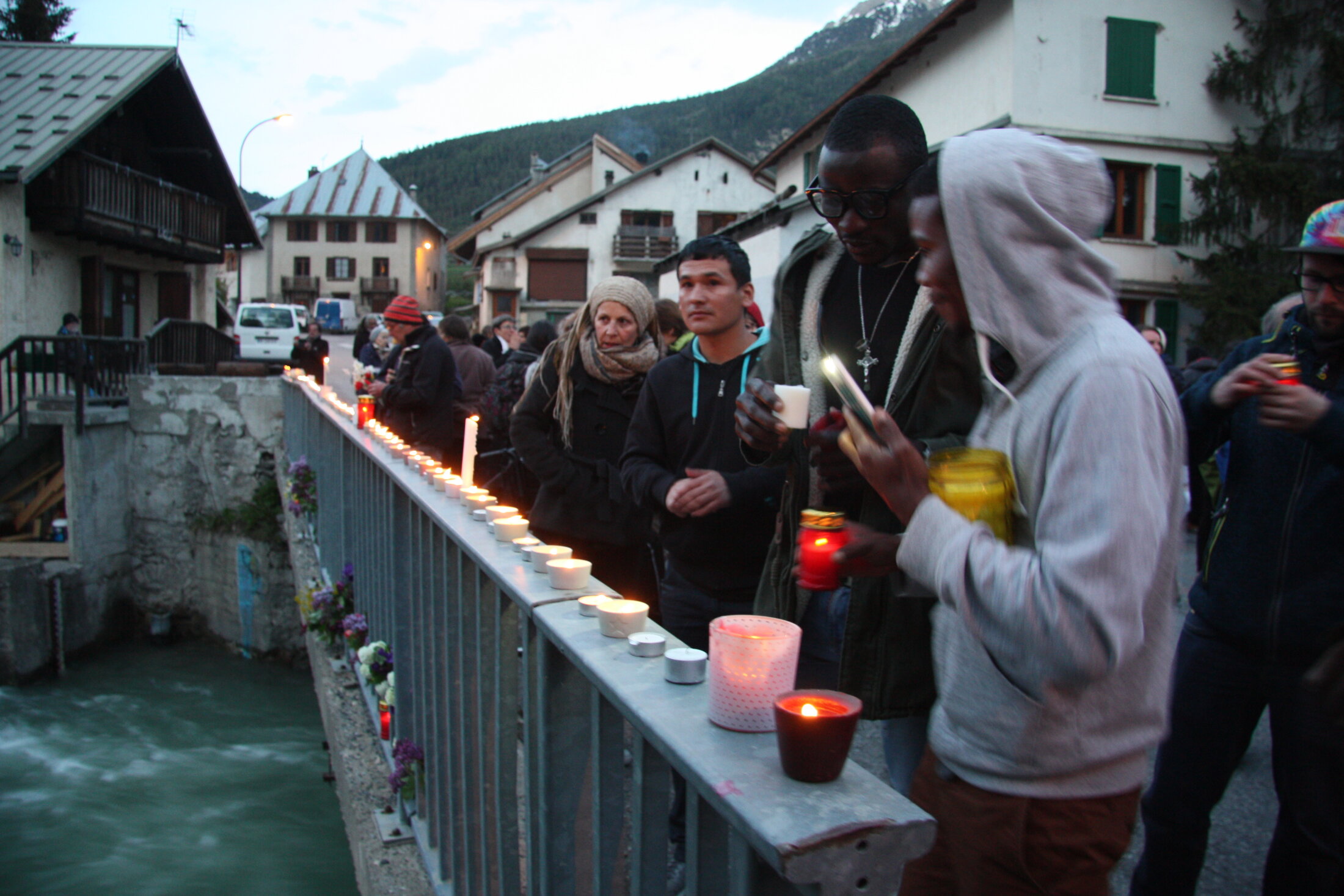 On May 16th a hommage to Blessing, in the form of a vigil, was held in La Vachette, upon a of bridge that spans the Durance river. “This death is a case too many,” said Michel Rousseau, from the ‘Tous migrants’ association, surrounded by dozens of other activists, many carrying branches of lilac flowers. “The ambushes must be banned, otherwise where is the notion of ‘discernment’ that is allowed for in the [deontology principals of the] home security law code? Within the collective, we say that there are illegal practices. And we’re criticised for talking nonsense? And what about the rights’ ombudsman [the upholder of human rights in France who has criticised the treatment of migrants in the country]? The CNCDH [French public institution for the protection and promotion of human rights, also critical of the treatment of migrants in France]. The pope? The archbishop? The administrative tribunal in Nice [which ruled against a decision by a local prefect to send back to Italy 20 unaccompanied minors, all African nationals who crossed into France]? Are they all supposed to be bandits?”