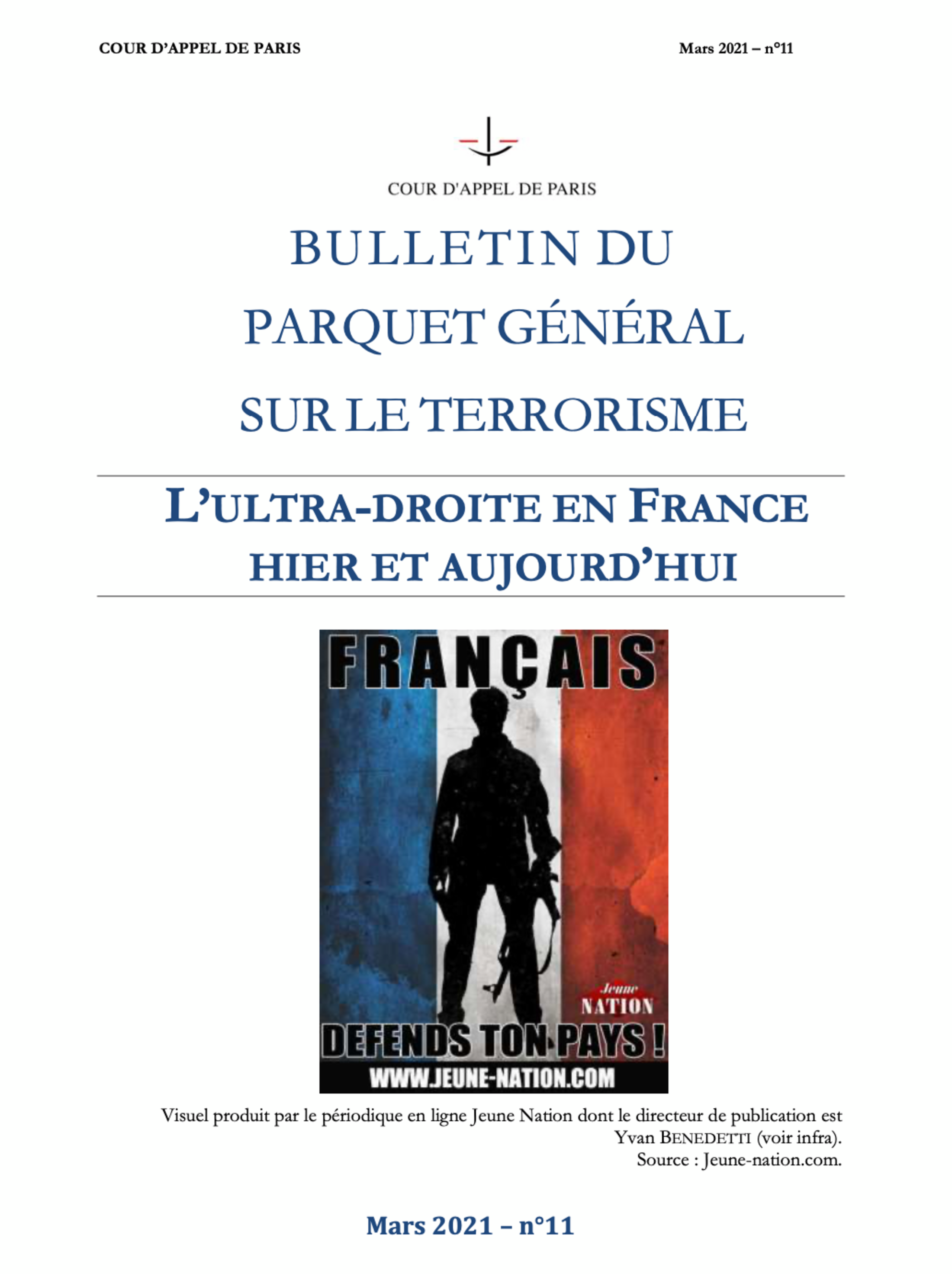 Today Mediapart reveals further proof of that growing threat in the form of a 56-page document written by the prosecution authorities at the court of appeal in Paris where Naïma Rudloff is based. Dated March 2021, this eleventh edition of the confidential 'Bulletin sur le terrorisme' produced by the prosecution authority that oversees France's anti-terrorism prosecution unit, the Parquet National Antiterroriste (PNAT), is devoted to the threat posed by the ultra-right in France.
