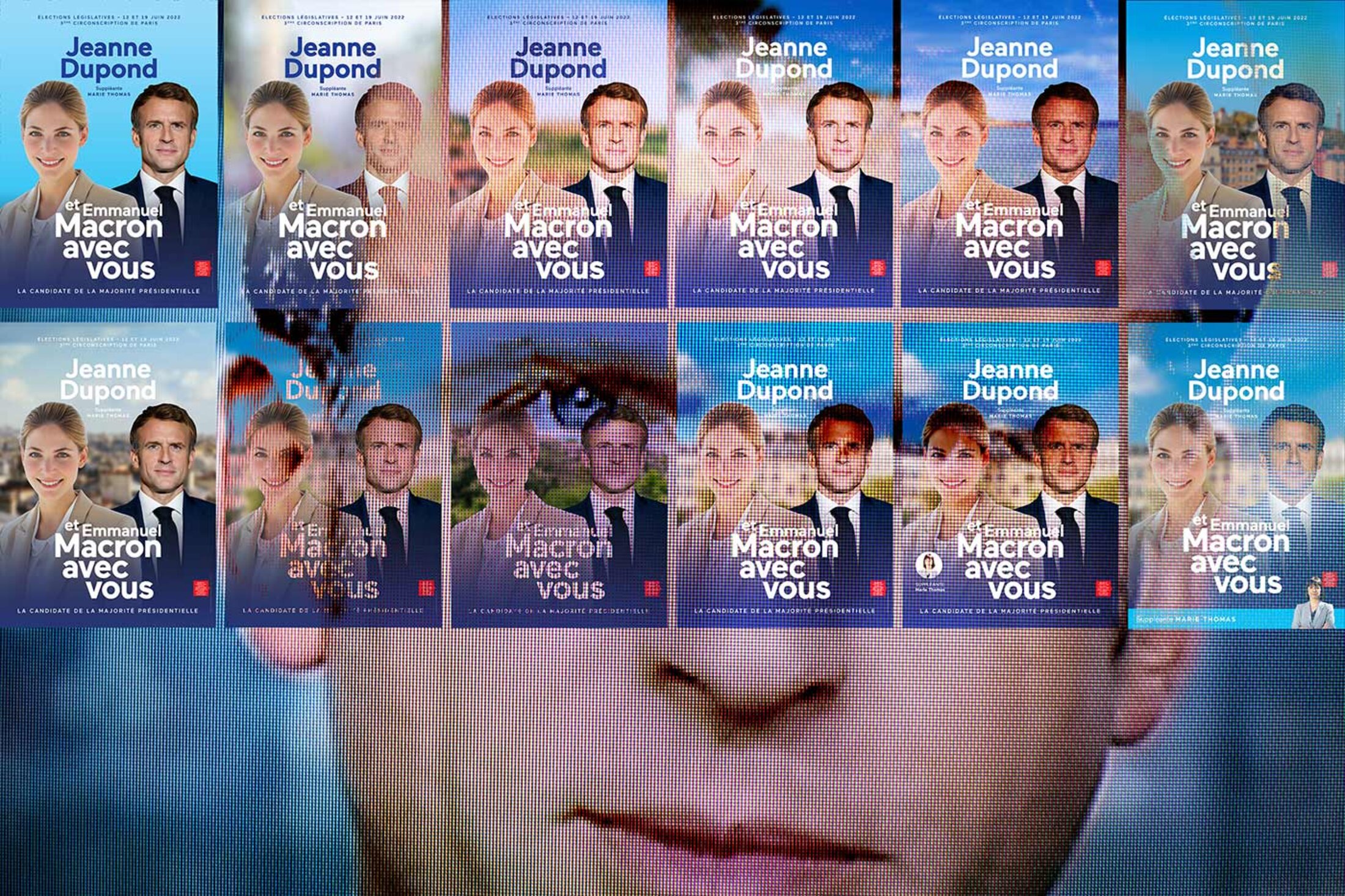 Macron by the sea, Macron in the fields, Macron in the city, Macron in a village. There is something for all tastes in the campaign pack provided for election candidates from France's ruling party for a mere 2,450 euros. Just two weeks before the first round of the Parliamentary elections on June 12th – the second round is a week later – official campaign literature is adorning the election hoardings. The posters on display show both the design choices and also the very political decisions that have been made by the candidates for the centrist Ensemble coalition. This alliance consists of Emmanuel Macron's ruling La République en Marche (LREM) – now renamed Renaissance – and two allied parties.