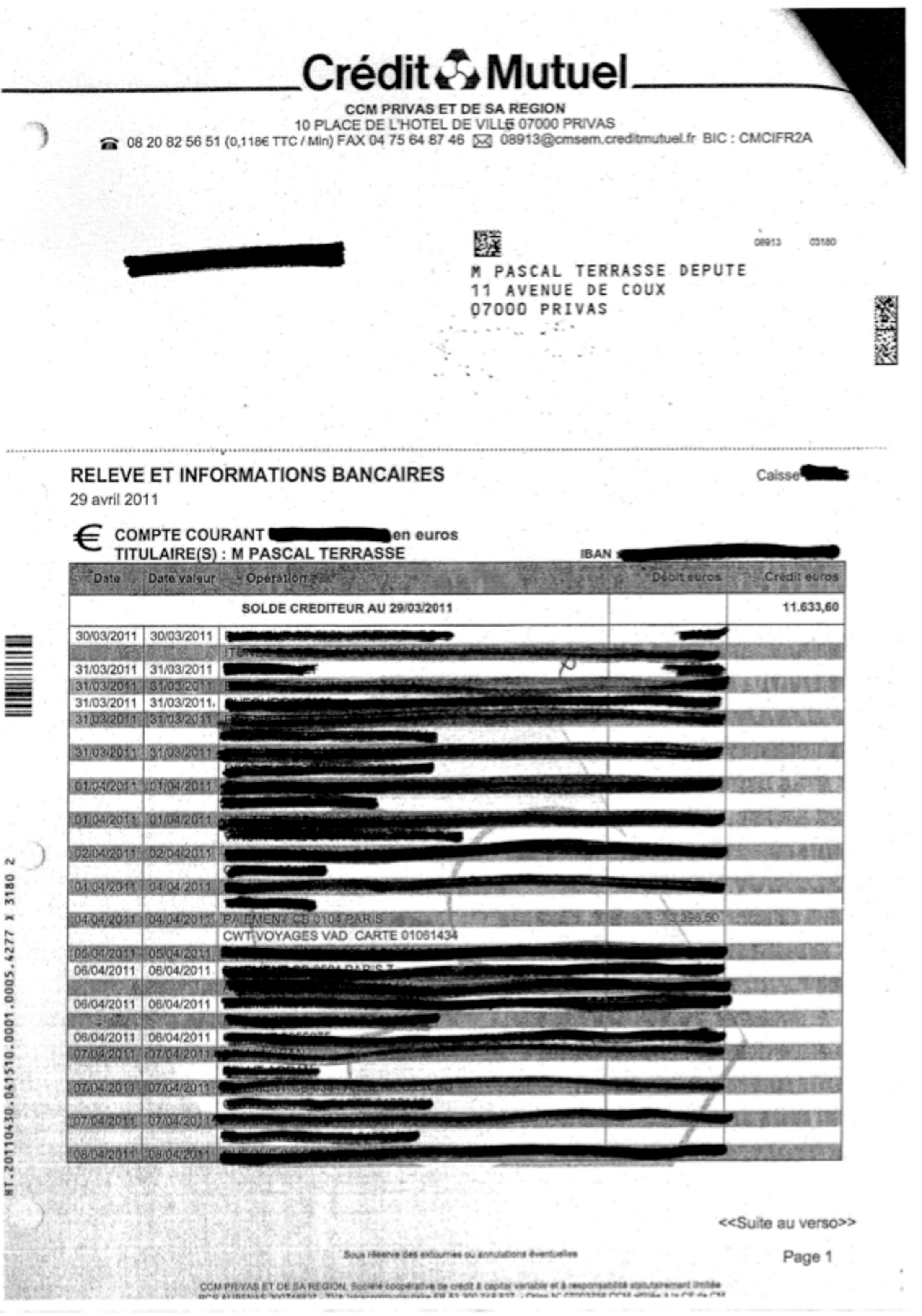 As well as mixing up his functions as an elected representative, Terrasse has also confused his work as an elected MP with party politics. For example, he used his parliamentary account to pay for a flight to London – at a little over 800 euros a time – on Socialist Party business. “Just about all the MPs do that,” he claims. Terrasse also pays his 500 euro monthly subscription to the Socialist Party – via the A.F.P.S. or Association du financement du parti socialiste – out of his IRFM expense account (see below). Yet the secretariat for the socialist group of MPs at the National Assembly says the payment of this contribution is made from an MP's personal salary. This party contribution is in fact tax deductible. So Terrasse gets a double benefit, by paying a tax-deductible contribution out of an expense account which itself does not attract income tax.