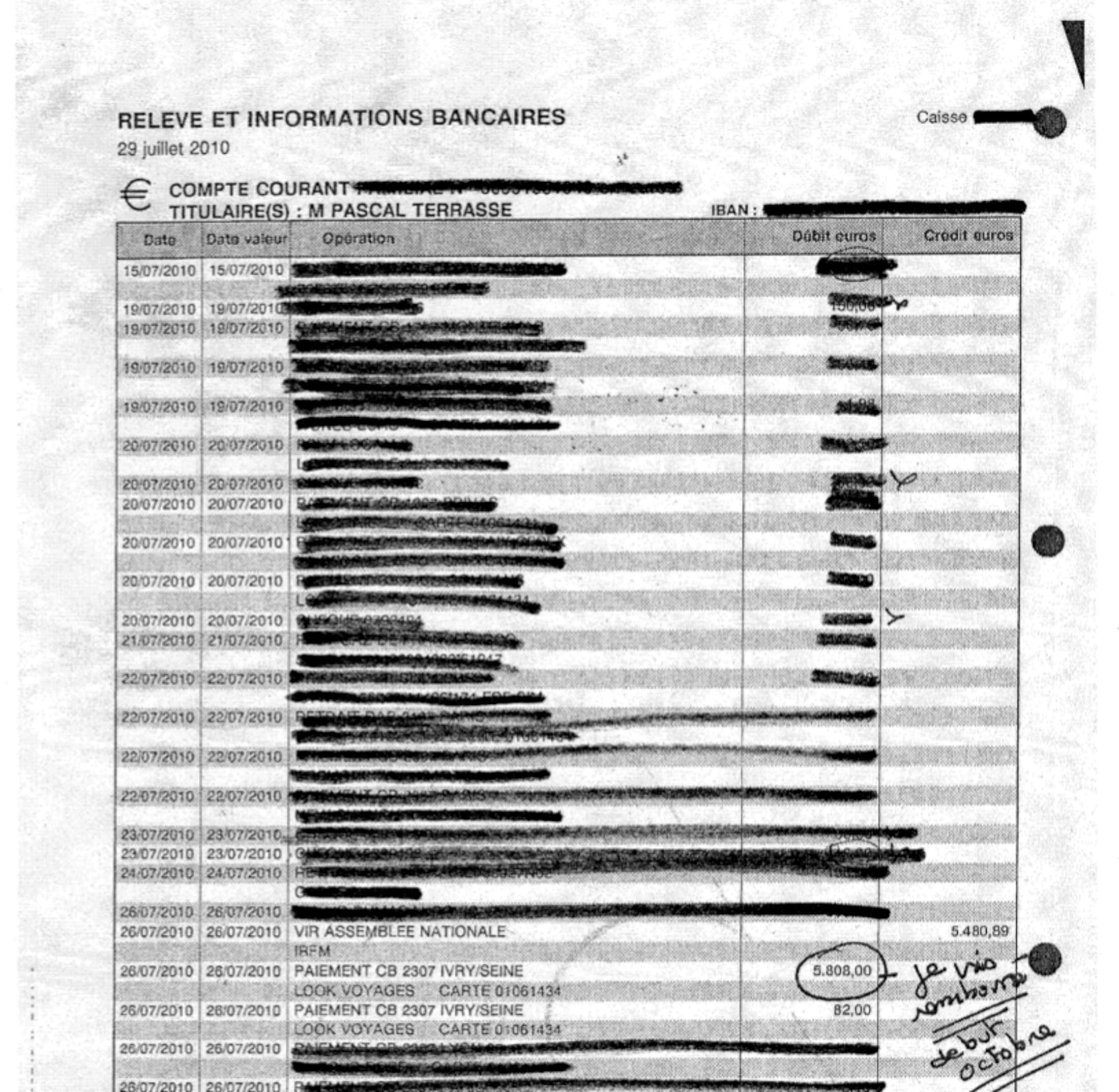 What can be said about a weekend visit to Barcelona in May 2010 for which hotel, restaurant and leisure bills were met by the MP's debit card on his IRFM account? The total came to around 800 euros. “I can no longer remember,” Terrasse told Mediapart. “Sometimes I make payments on the debit card that I reimburse later.” That was precisely his argument concerning the 5,808 euros and 82 euros paid separately in July 2010 (see below) to the travel firm Look Voyages, which confirms handling a trip for the Terrasse family in August of the same year on the Greek island of Rhodes.
