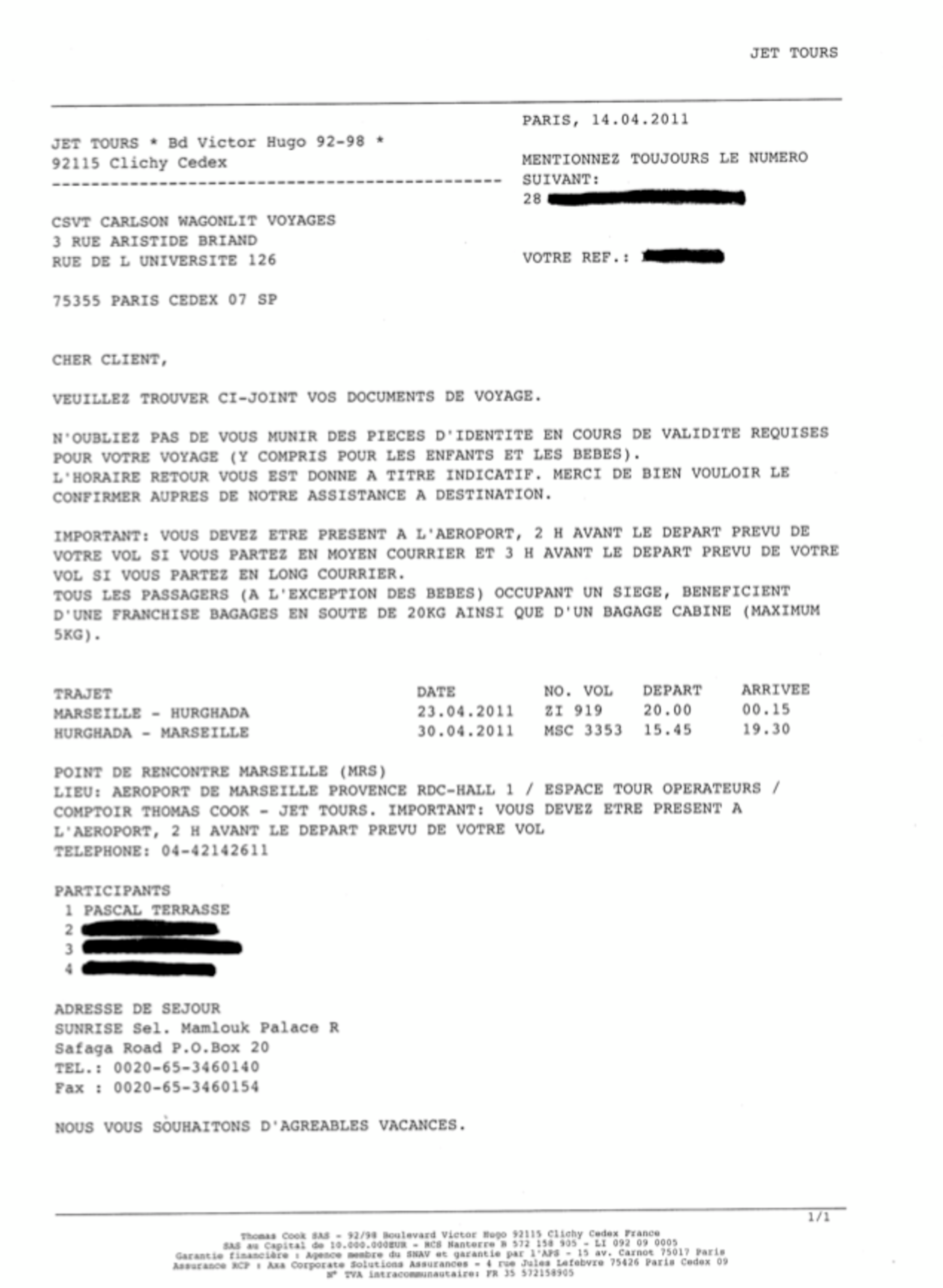 The most recent example concerns a trip to Egypt. As an email confirming the reservation (see above) and an extract from Terrasse's IRFM account show (see below), the MP went with his wife and children to Egypt from April 23rd to April 30th 2011. The cost of the trip, booked through travel firm Carlson Wagon Lits Voyages, was 3,398.50 euros, charged to the National Assembly. There is little doubt about the nature of the journey. “We wish you an enjoyable holiday,” the email concludes. When questioned by Mediapart about the trip Terrasse had no explanation for it.