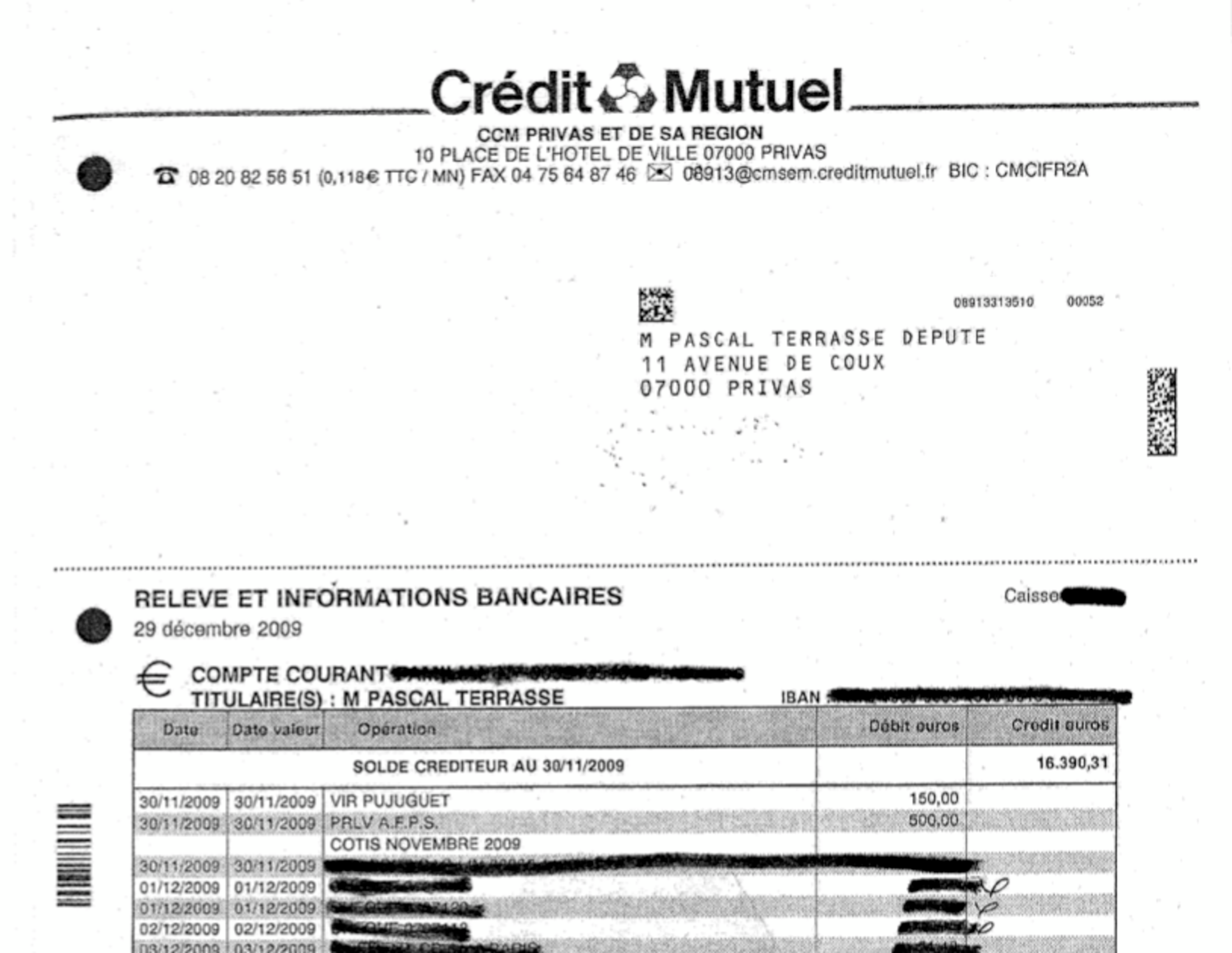 He maintains that he reimbursed his IRFM account in December 2011; to this day he has provided no proof of this. And if he did repay the money that was in any case a year and a half after the expenditure. Terrasse is a member of the Franco-Greek Republic friendship group of the National Assembly, but the Assembly's website has no record of any trip or delegation carried out by this group at this time.