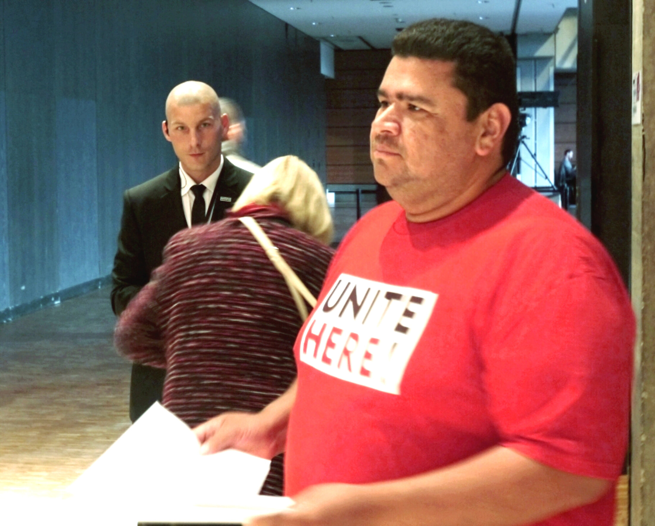 “If you hurt yourself or get sick, you have to choose between paying the doctor, paying the rent or buying food,” Henriquez told Air France-KLM shareholders, calling upon them to work together with Flying Food Servair's employees to get better conditions. The request seemed to cause some discomfort among the rows of shareholders, who later that same day confirmed Alexandre de Juniac as chairman and CEO of the Franco-Dutch group for a further four years. At the door León and Noel Rodriguez of Unite Here were handing out leaflets describing their working conditions.