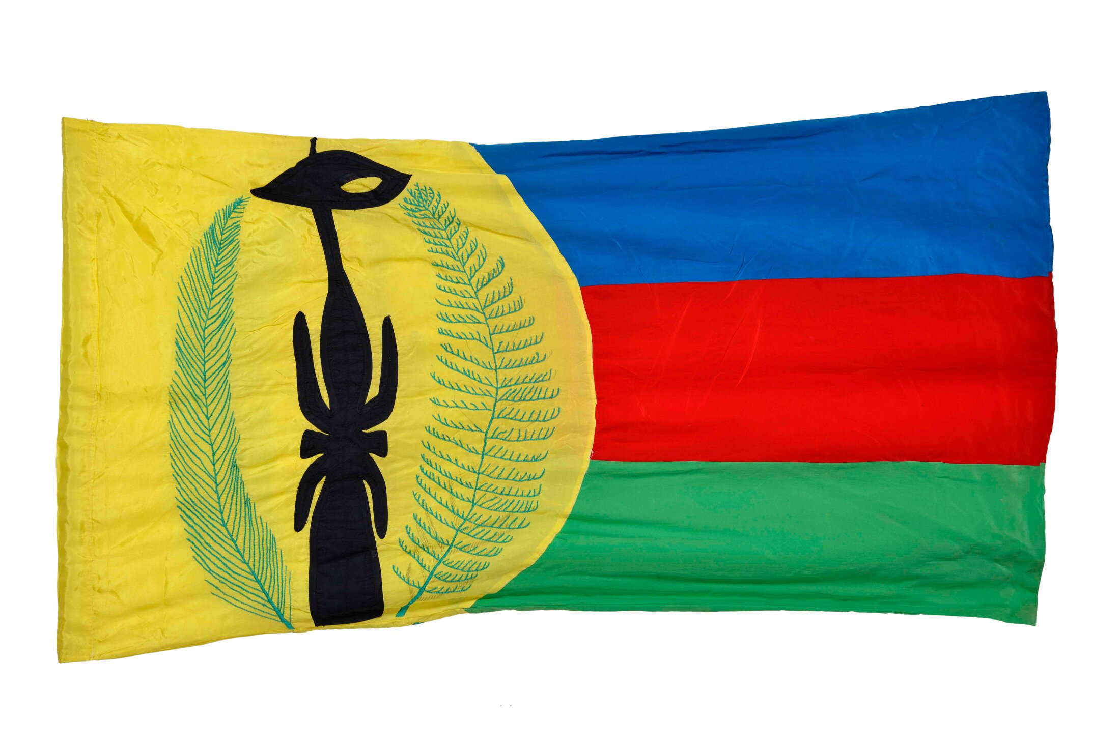 “The Kanak flag appeared in the 1980s, exactly when we don’t know », explains Bensa. It emerged along with the nationalist movement, as a necessary reference to prepare for independence. There’s no country without a flag, there’s no flag without a country […] the green stands for nature, the red is blood […] the Kanak idea is that the maternal uncles transmit the flesh and the blood […] by marriage the blood circulates from one clan to another, the clan being patrilineal. The blue is the sea. They added the symbol of ancient Kanak political authority which is the flèches faîtières, inside a sun.” During the discussions of the Noumea Accord, a national anthem was agreed but not a new name for the territory or a national flag. Concerning the latter, the Kanaks are against the proposition by the European population that the French tricolour be represented. “The debate is still ongoing, for the moment the two flags are there,” comments Bensa. “Will things stay like that? Maybe, perhaps that’s a solution. But it marks out the adherences of two communities which wasn’t exactly in the spirit of what was set out, which is that of a common destiny.”