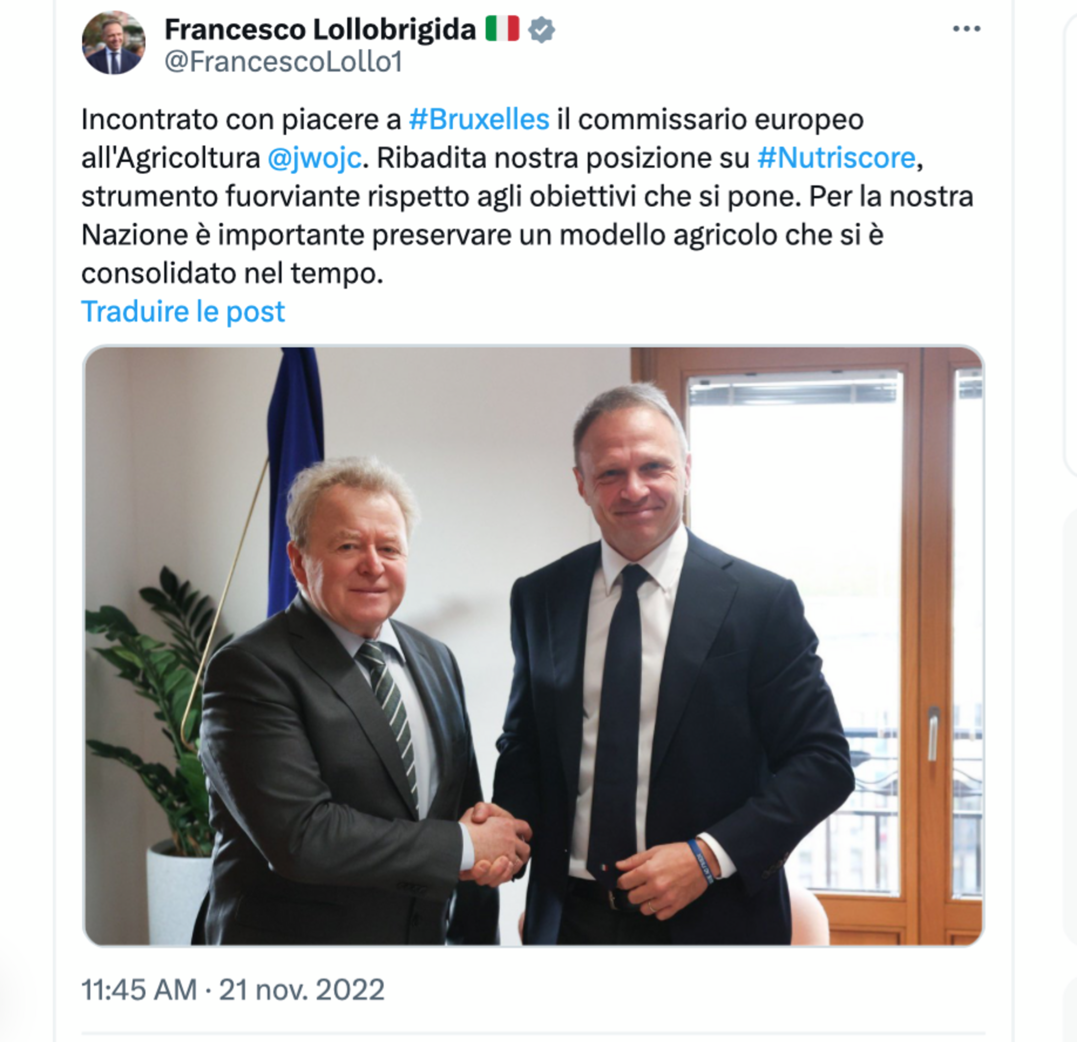 No minutes have emerged of the meeting held on November 21st 2022 between the commissioner for agriculture Janusz Wojciechowski and Italy's minister for agriculture Francesco Lollobrigida. Just a preparatory note has been made public. “We are aware of the Italian concerns on 'Nutriscore' and attentive about the possible impact of such scheme on products which cannot be easily reformulated such as Geographical indications, single ingredient products olive oil, cheeses, etc.” write the Polish commissioner's 'sherpas'.