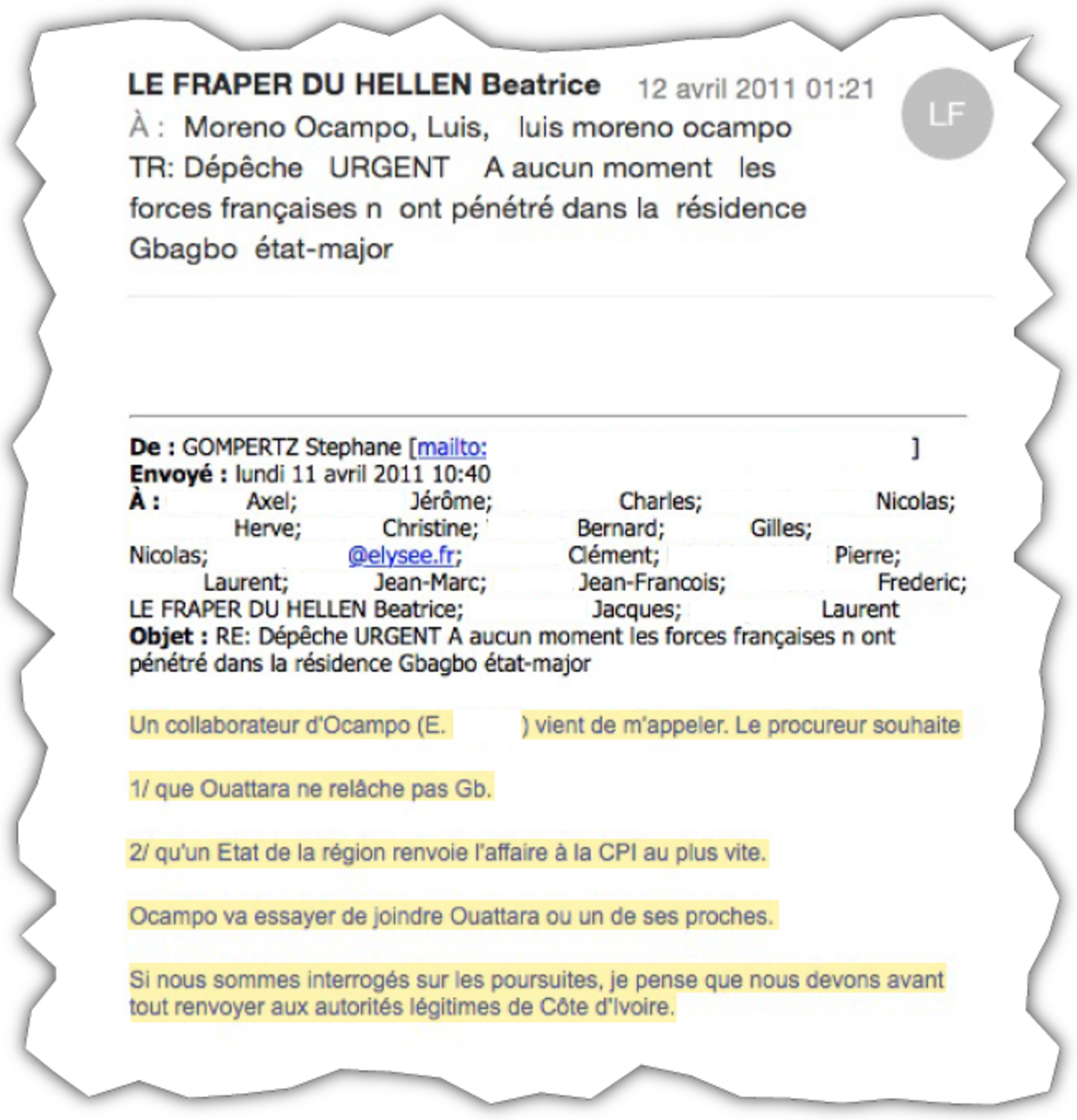 On December 11th 2010, ICC chief prosecutor Luis Moreno Ocampo was contacted by French diplomat Béatrice Le Fraper. Between 2006 and 2010 she had served at the ICC as Ocampo’s senior advisor and principal private secretary, before becoming a member of France’s permanent mission at the UN. “I need to know what happened in your conversation with Alassane Ouattara,” Le Fraper told Ocampo in her December 2010 message.