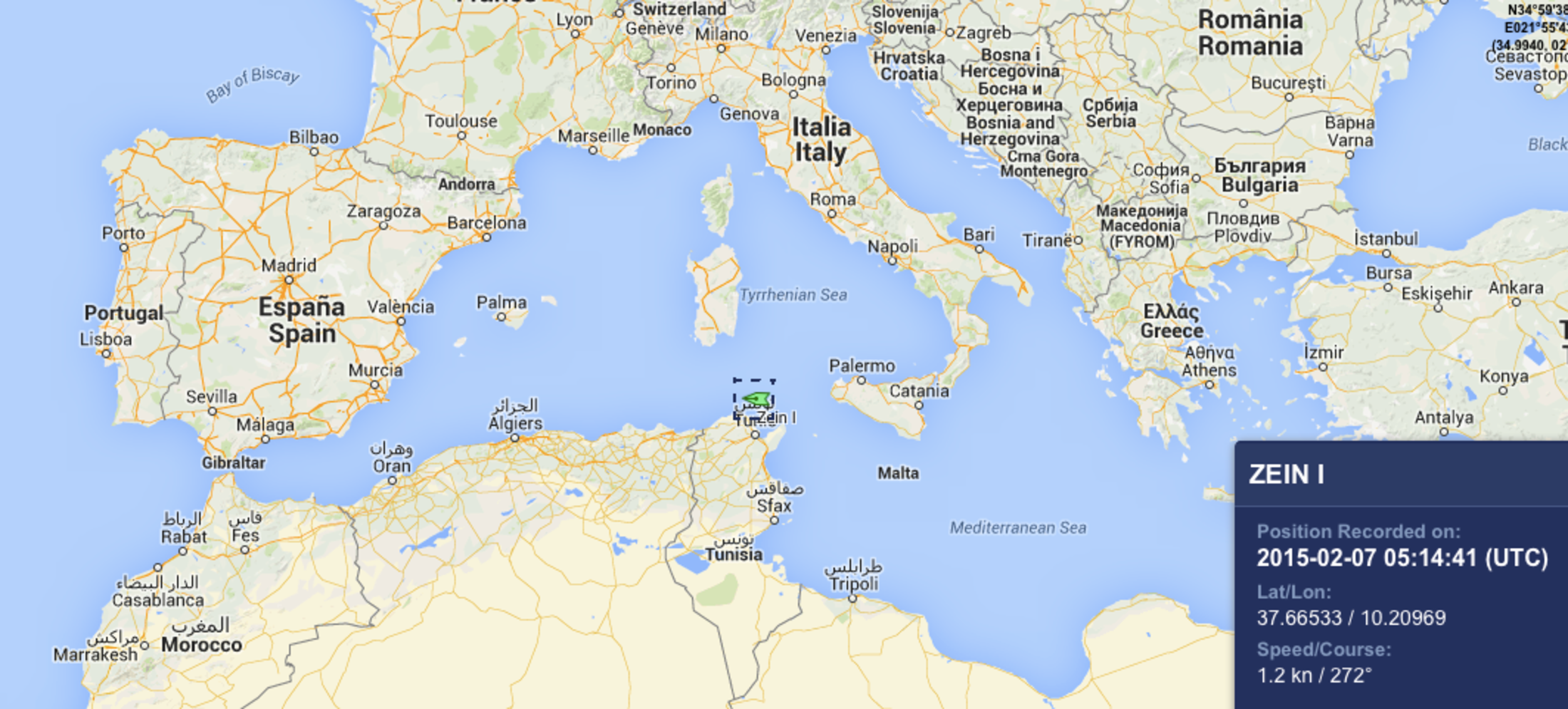 Two days after the interception of the Zein, the Panama-registered ghost ship found by the Týr drifting in the central Mediterranean, its position could be found on the website MarineTraffic.com, which tracks the movement of vessels in real time. It was positioned off the coast of Tunisia, after having passed close to the island of Lampedusa, apparently on a course that might just take it to Las Palmas. Or not.