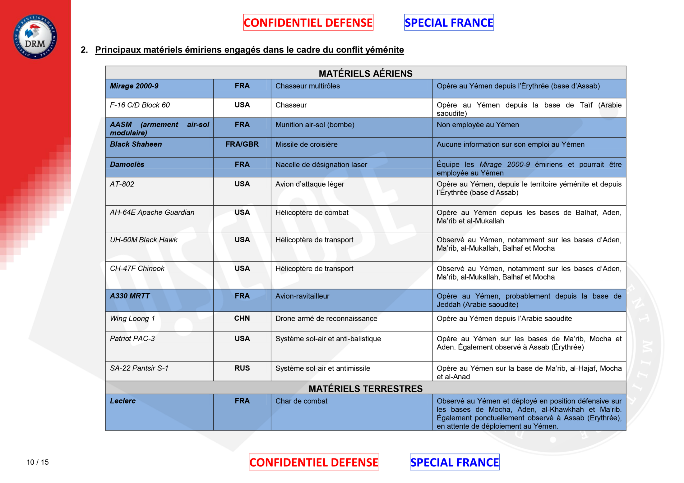 The leaked DRM report, illustrated with maps and graphics, reveals here for the first time what the French government has thus far attempted to conceal, namely a detailed list of French weapons that are part of the arsenal employed in the conflict in Yemen.