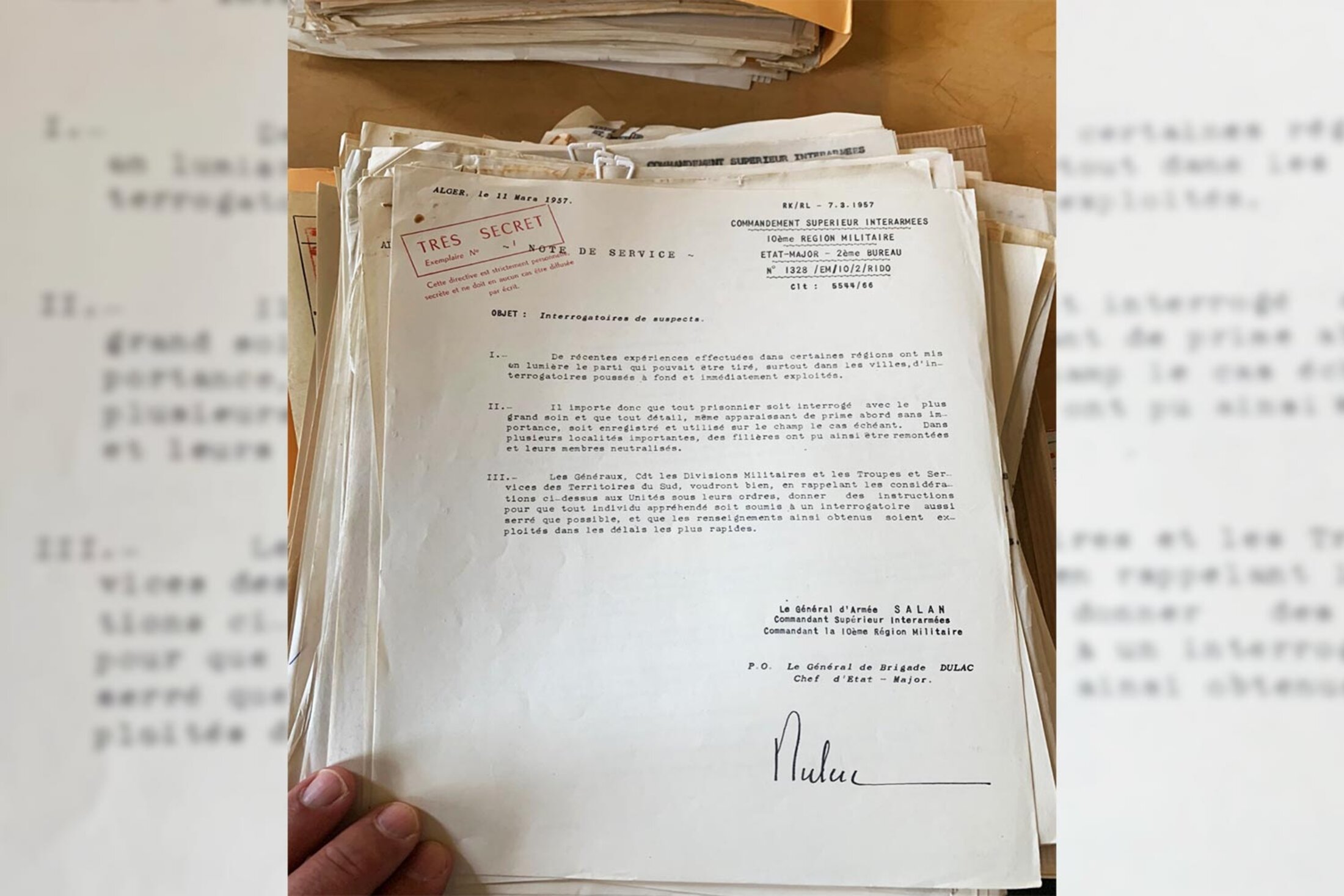 In the French military archives of the Service historique de la Défense (SHD) is a typed note dated March 11th 1957, containing three numbered paragraphs and signed by General Raoul Salan, the commander-in-chief of French forces in Algeria. Entitled “interrogations of suspects”, it was addressed to all commanding officers in the French colony.