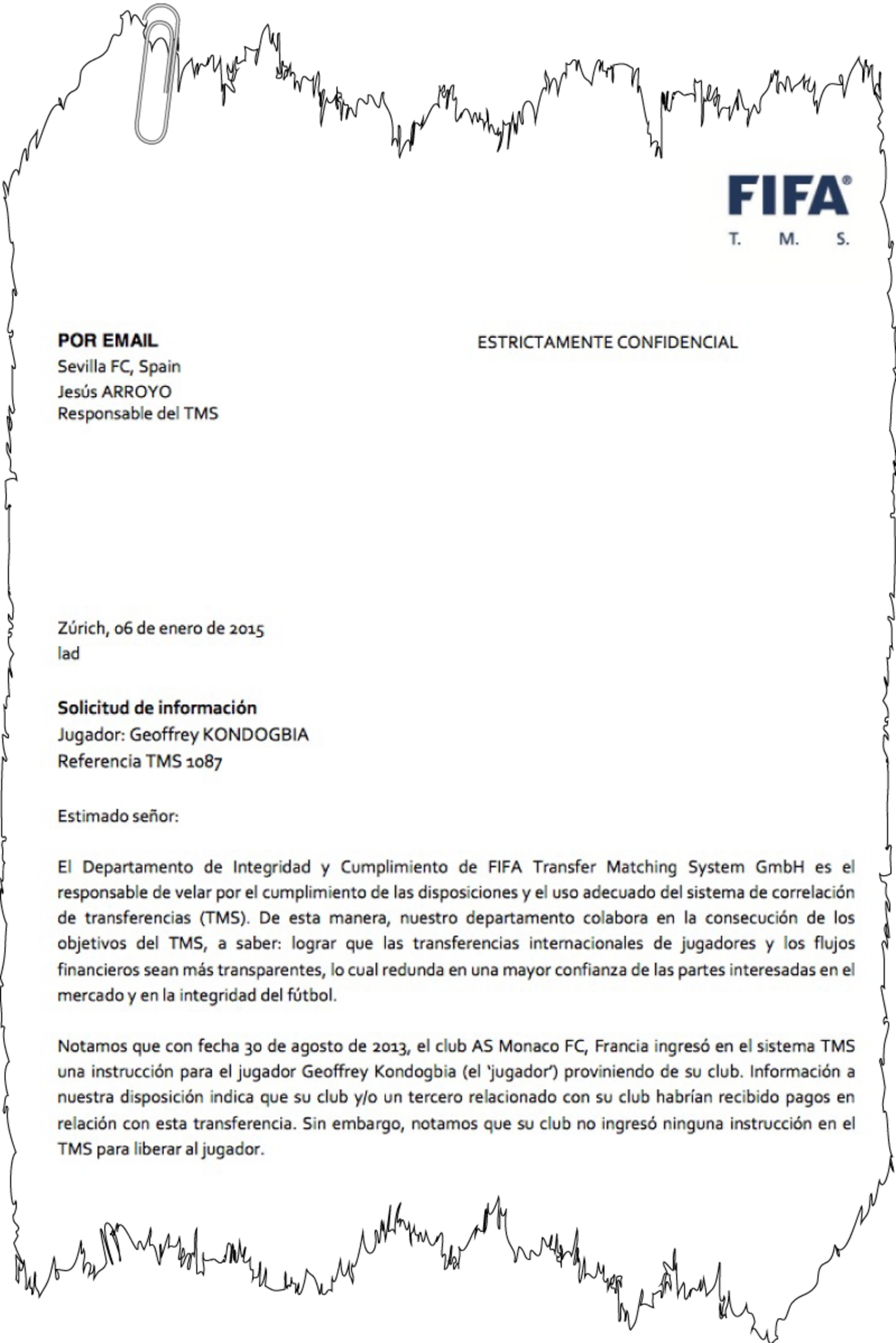 Six months later, Fifa launched an investigation into Kondogbia’s transfer to Monaco. On January 6th 2015, Kimberly Morris, head of Fifa’s TMS Integrity and Compliance department wrote to Spanish club Sevilla asking for all the documents relative to the French midfielder’s transfer to Monaco, the payment details, and in particular the payments linked to Doyen Sports. “Information available to us indicates that your club and/or a third party related to your club would have received payments in connection with this transfer,” she wrote, reminding the club that any influence by exterior parties on the independence of transfer policies is an infringement of Fifa’s rules. Fifa also suspected that a secret payment of 500,000 euros was made during Kondogbia’s earlier transfer to Sevilla from French club Lens in 2012.