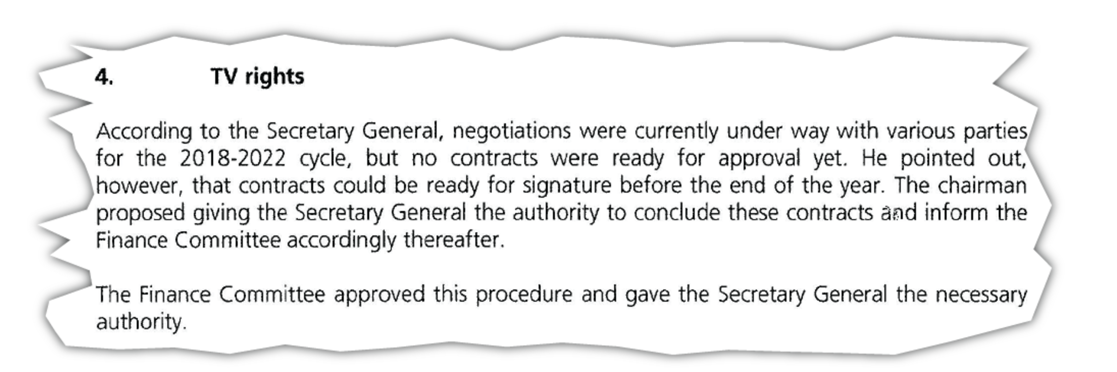 The same day, the executive committee held an extraordinary meeting, when the bonus payments were not announced. It is unclear whether those present were informed about the Al Jazeera contract.