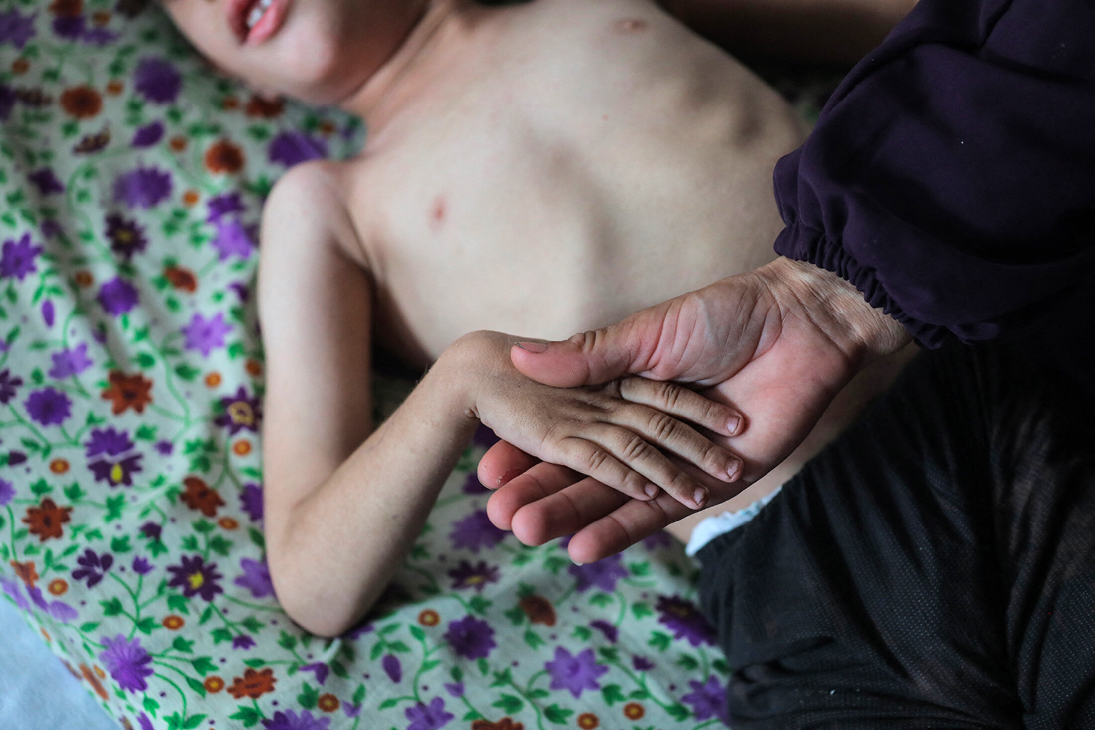 J.C.: In those hospitals where MSF [Médecins sans Frontières] treats the injured and the burned, we have cases of wounds that don’t heal. Someone who is operated upon needs more calories in order to mend, whereas we can only supply one meal per day, without protein – rice with spices, pasta, starchy foods then, sometimes a little chick peas, but never red meat, nor chicken. So the wounds don’t heal.