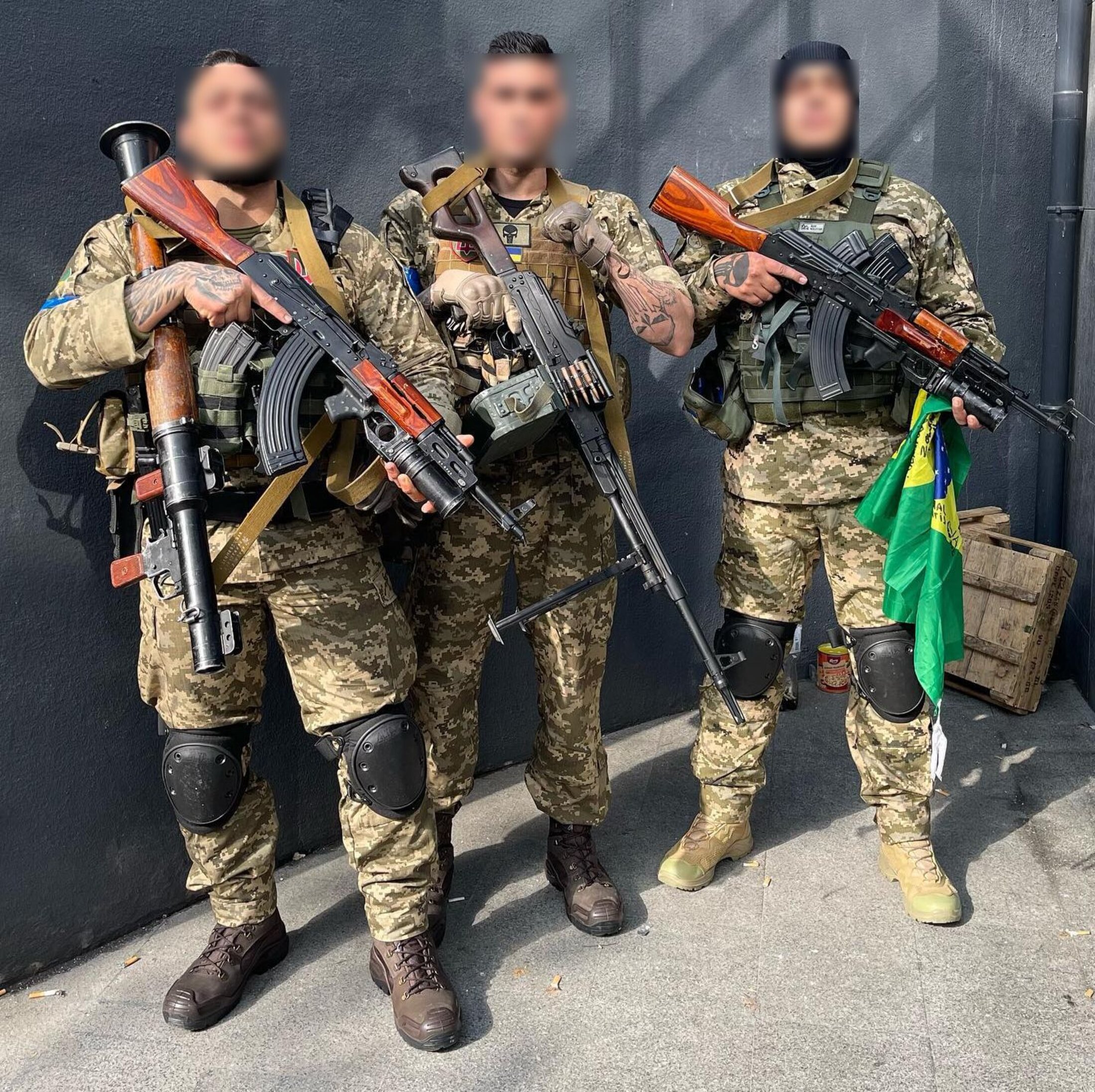 Pedro, Eduardo and their friend Miguel have now reached Kyiv. Images posted on their Instagram profiles show them posing, weapons in hand, with a Brazilian flag, and fighting in a wooded area.
