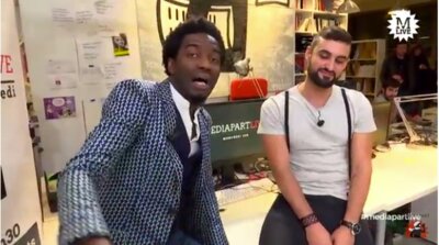 Les poètes Capitaine Alexandre et Rohân Houssein, du collectif On A Slamé Sur La Lune, sont venus clore, en vers et en prose, la soirée « En direct de Mediapart » sur le thème du roman national.