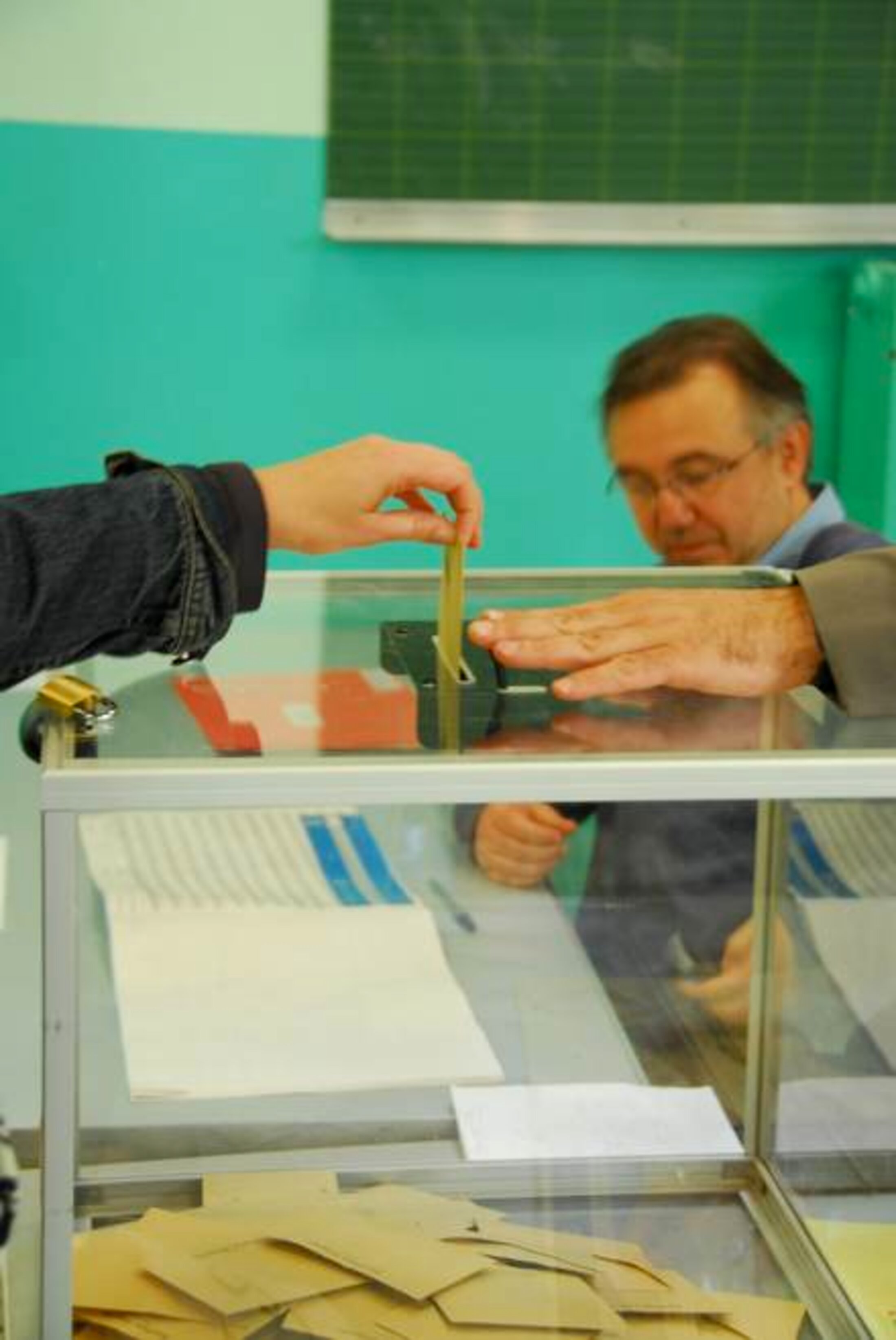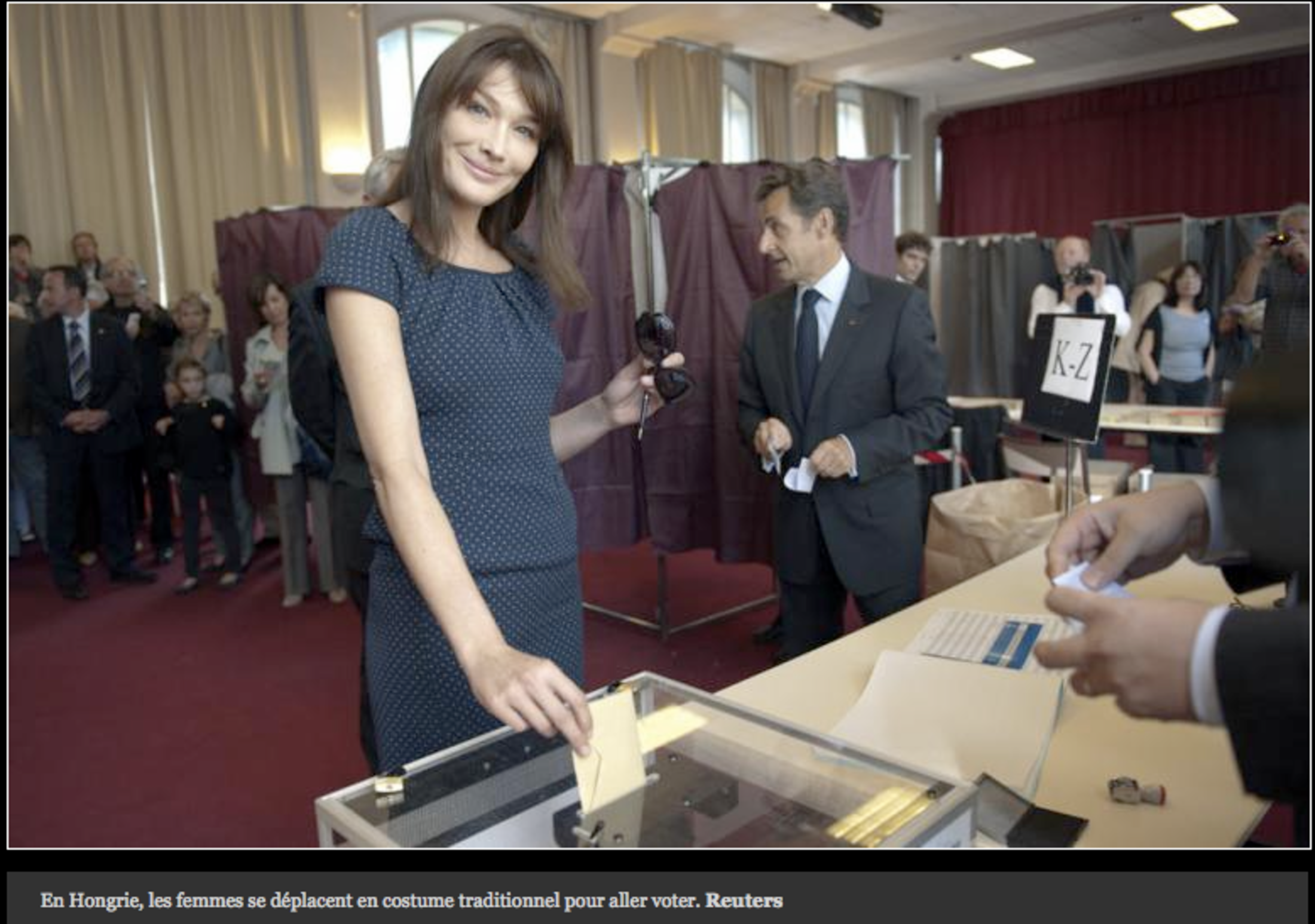 A voté. A 12h45, l'Agence France-Presse annonce que le président Nicolas Sarkozy et son épouse Carla Bruni-Sarkozy ont voté à 12h30 au lycée Jean-de-La-Fontaine, à Paris (XVIe arrondissement). Ségolène Royal (PS) a fait de même 45 minutes plus tôt dans son fief de Melle (Deux-Sèvres) alors que Martine Aubry, première secrétaire du Parti socialiste, votait vers 10 heures à Lille. Dans la matinée aussi, le premier ministre François Fillon s'est rendu avec son épouse dans le bureau de vote de Solesmes, petite commune de la Sarthe dont il est conseiller municipal depuis 2001, tandis qu'Eva Joly, colistière de Daniel Cohn-Bendit sur la liste Europe-Ecologie en Ile-de-France, a déposé son bulletin peu après 11h00 dans une école primaire à Paris. François Bayrou, président du MoDem, fut un des plus matinaux puisqu'il s'est rendu au bureau de vote de son fief de Pau, peu après 9 heures. (photos©Thomas Cantaloube)