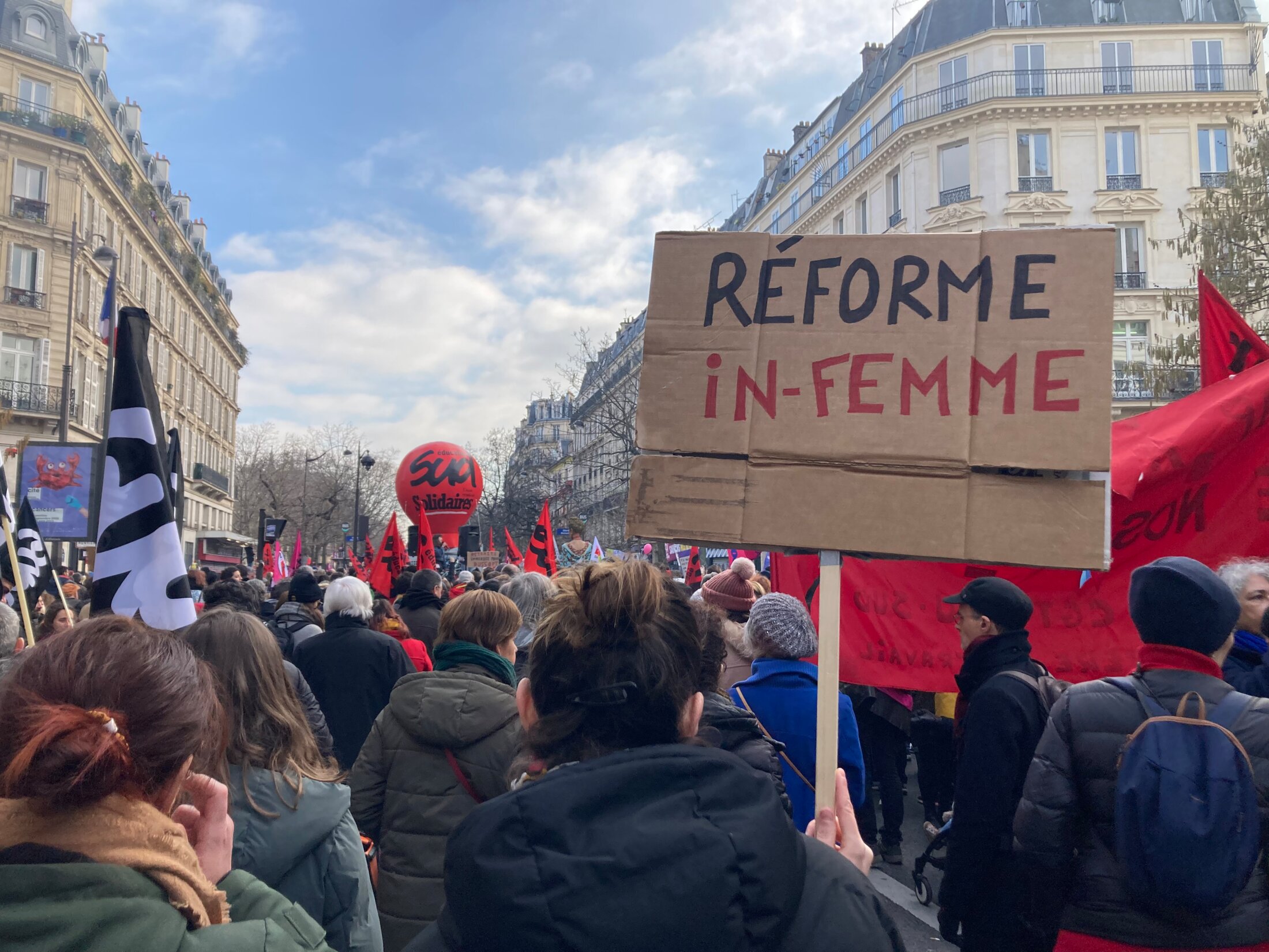 À 59 ans, Michel défilait pour la première fois ce samedi contre la réforme des retraites. Il est venu des Yvelines avec les camarades de la CFTC Transports : « Je ne pouvais pas me permettre de faire grève, je touche à peine plus que le smic alors que je suis en fin de carrière. Mais je ne comprends pas comment Macron peut vouloir faire cette réforme comme si on avait voté pour lui alors qu’on a voté contre Marine Le Pen. »