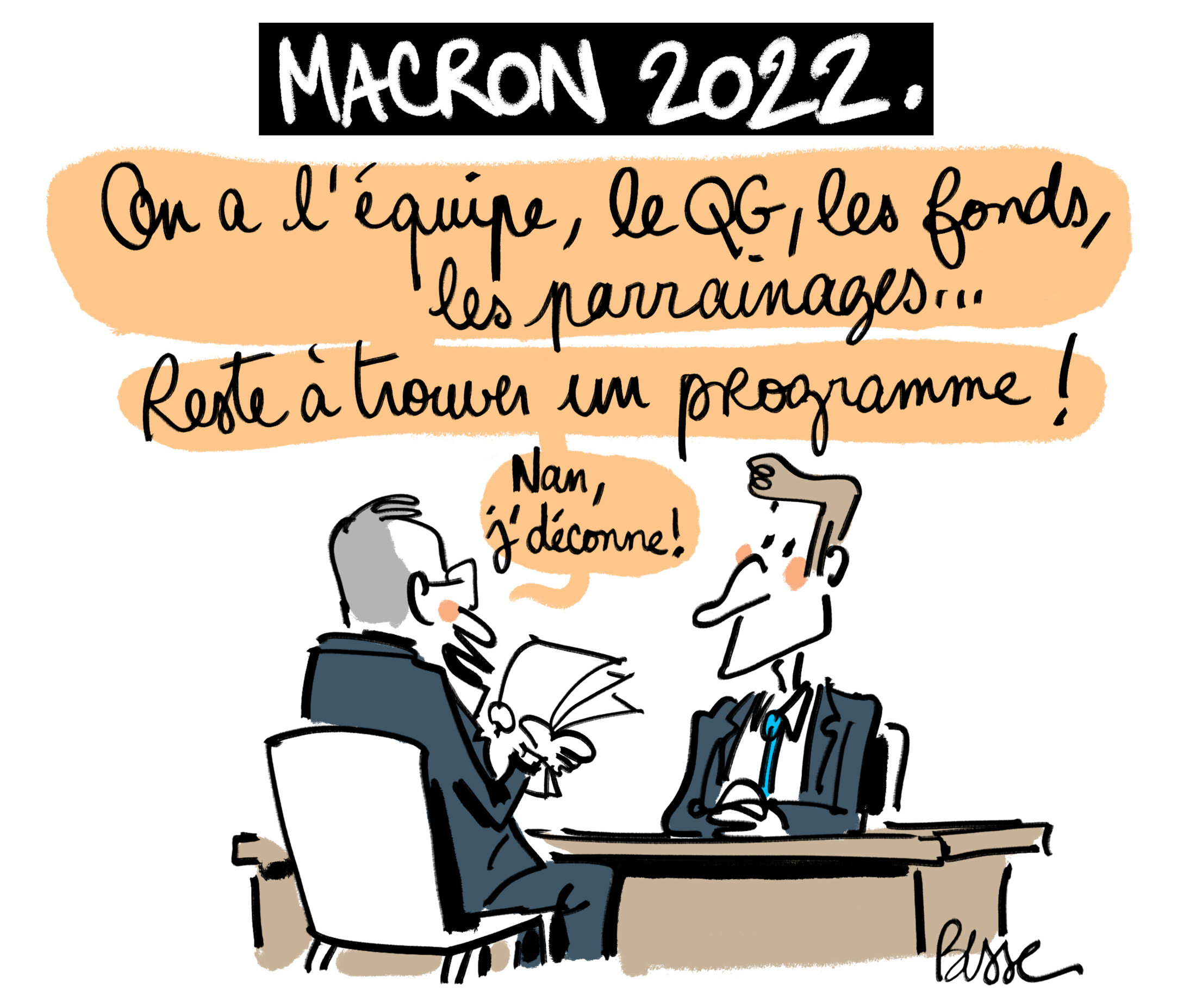 Chaque jour, l’actualité de la campagne présidentielle 2022 passe sous les regards et les crayons affûtés de notre équipe de dessinateurs et dessinatrices. Aujourd’hui : Jérôme Sié.
