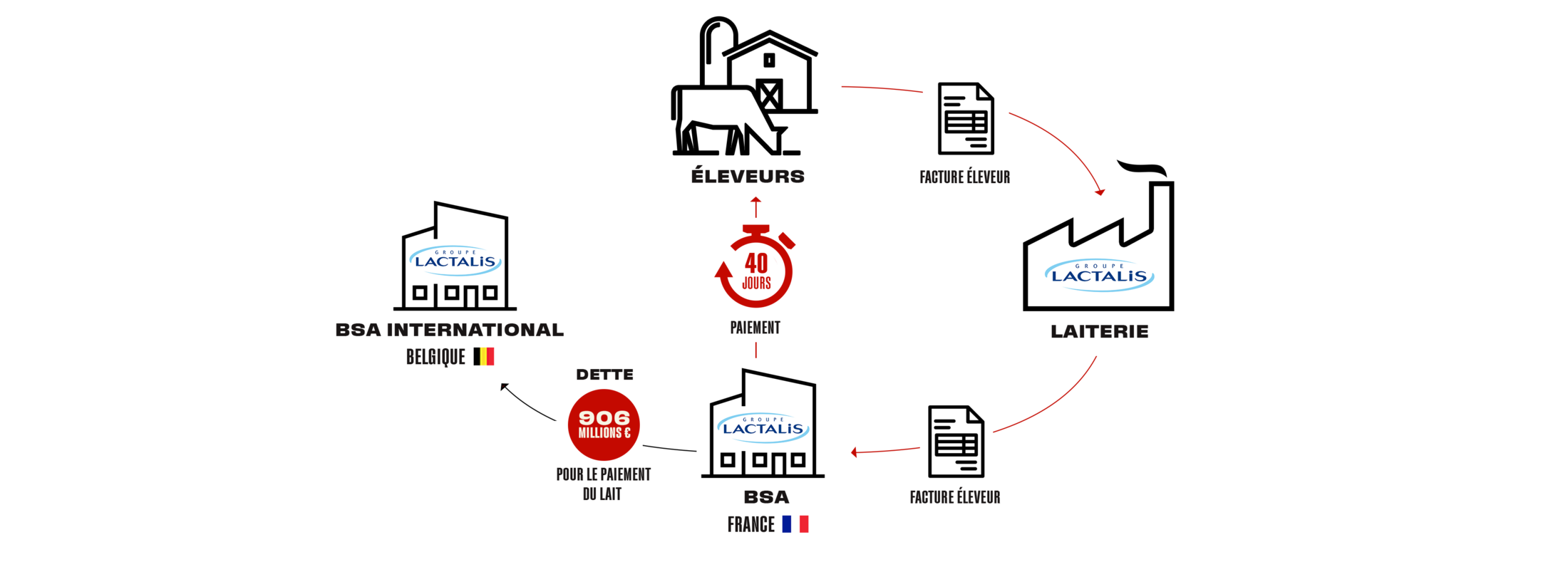 Tandis que le producteur patiente, la holding du groupe qui détient toutes les usines Lactalis en France va faire gonfler sa dette. Une dette qu’elle va transférer vers une autre holding du groupe, la société BSA International, qui détient des parts dans toutes les filiales française et internationales du groupe Lactalis.