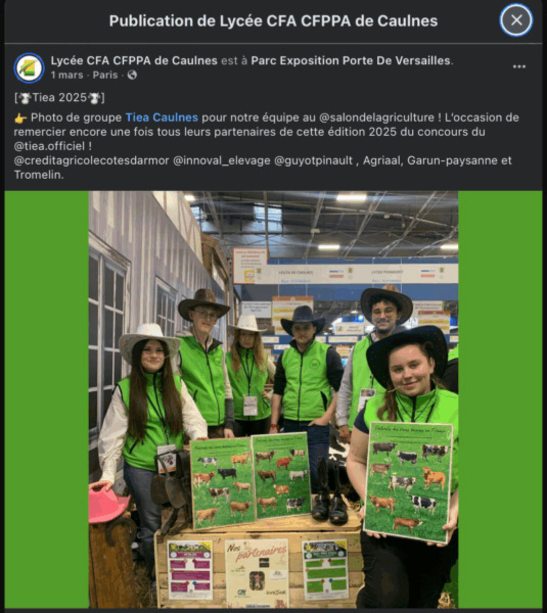 Les élèves eux-mêmes sont incités à démarcher ces entreprises agro-industrielles pour pouvoir financer leur participation au Trophée international de l’enseignement agricole (TIEA), qui a lieu tous les ans lors du Salon de l’agriculture. À cette période de l’année, les publications des lycées et des élèves fleurissent pour les remercier.