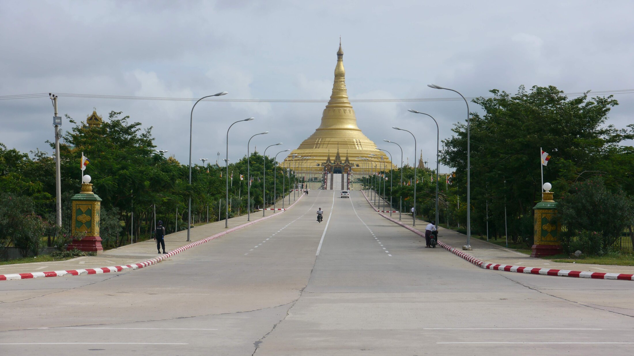 Une réplique de la grande pagode Shwedagon, emblématique de Rangoon, a ainsi été bâtie et inaugurée en grande pompe, avec toutefois 30 centimètres de moins que l’original, qui culmine à 98 mètres, mais avec un ascenseur intérieur en plus.