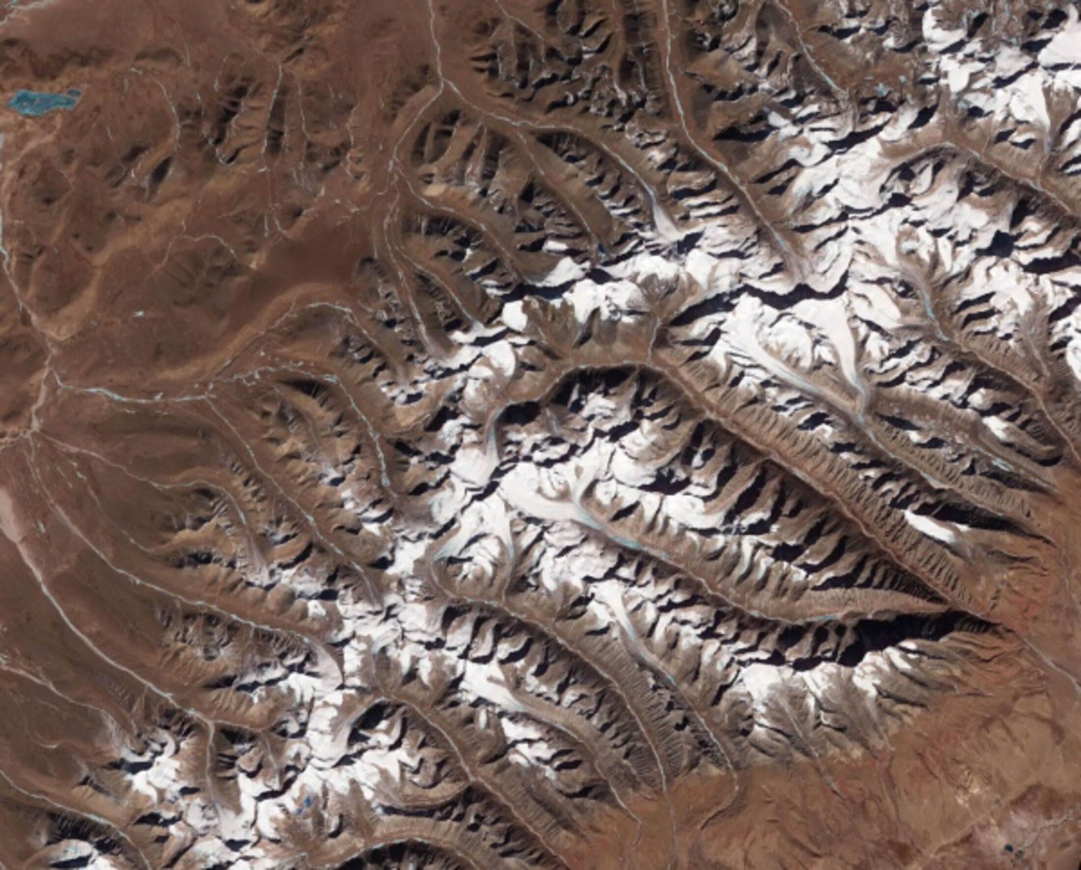 Vue aérienne des glaciers du plateau tibétain © Nasa Earth Observatory