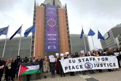 Alors que les Vingt-Sept s’enlisent dans leurs divisions au sujet de sanctions contre l’État hébreu, des membres de l’administration bruxelloise sortent du bois pour exprimer leur solidarité avec les Palestiniens. Mais les pressions au silence ou à la discrétion restent fortes.