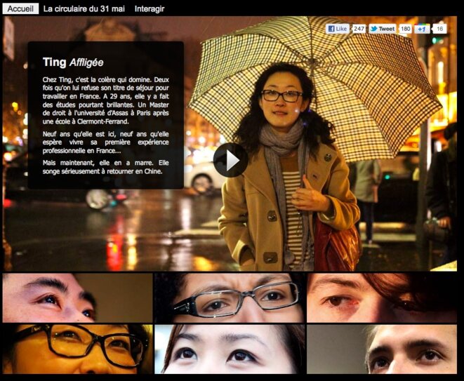 Ils sont chinois, marocain, américain, vénézuélien, venus étudier en France et voulant commencer ici leur vie active. La circulaire Guéant le leur interdit. Ce webdocumentaire signé Edouard de Mareschal et Jean-Baptiste Gauvin, Je t'aime moi non plus, montre leur parcours et permet de réagir en direct.