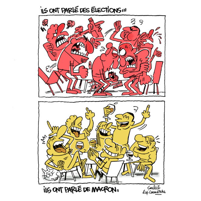 Jusqu’au second tour des législatives, l’actualité de la campagne passe sous le regard et les crayons affûtés du dessinateur de presse Thibaut Soulcié.