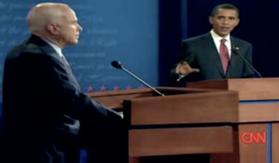Après quelques jours de suspense sur fond de crise financière, le premier débat télévisé entre Barack Obama et John McCain a finalement eu lieu, dans la nuit du vendredi 26 au samedi 27 septembre (heure française). Au programme des deux candidats à la Maison Blanche: crise financière et politique étrangère. Le combat n'a pas eu de vainqueur, chacun se contentant de camper sur ses positions. Depuis, les deux hommes entretiennent un dialogue à distance où chacun raille les arguments du rival.